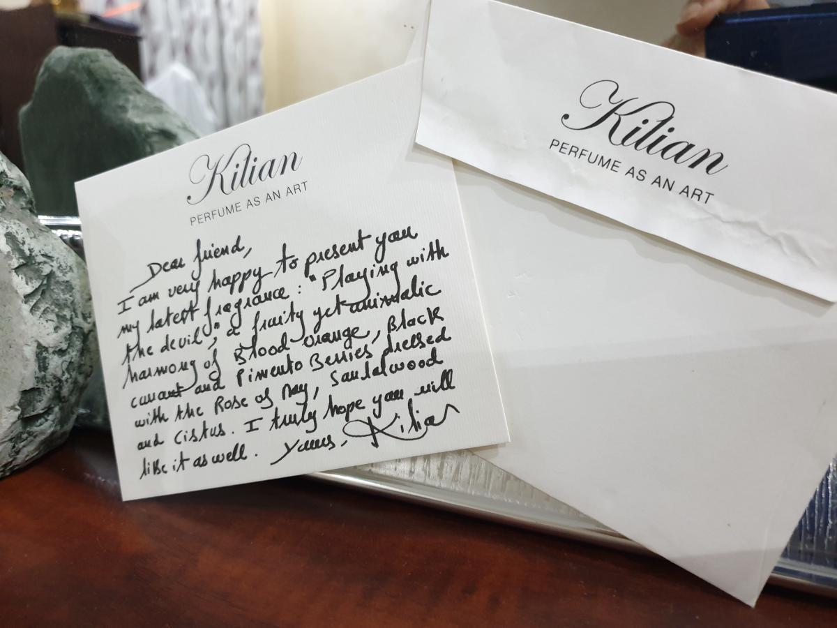 Vůně je naprosto "Kilian-like" - chemicky drzá a odvážná. Kilian (ať už je to cokoli) je slyšet na kilometry daleko. Je velmi obtížné identifikovat majitele tohoto parfému v davu, protože se zdá, že ho cítí všichni lidé v okruhu 5 metrů od nositele. Stojím u pokladny... slyším... Ďábla... A není možné určit, v kom byl, v pokladní nebo v dámě v norkovém kožichu. Jako by všechno nasákl cigaretový kouř.