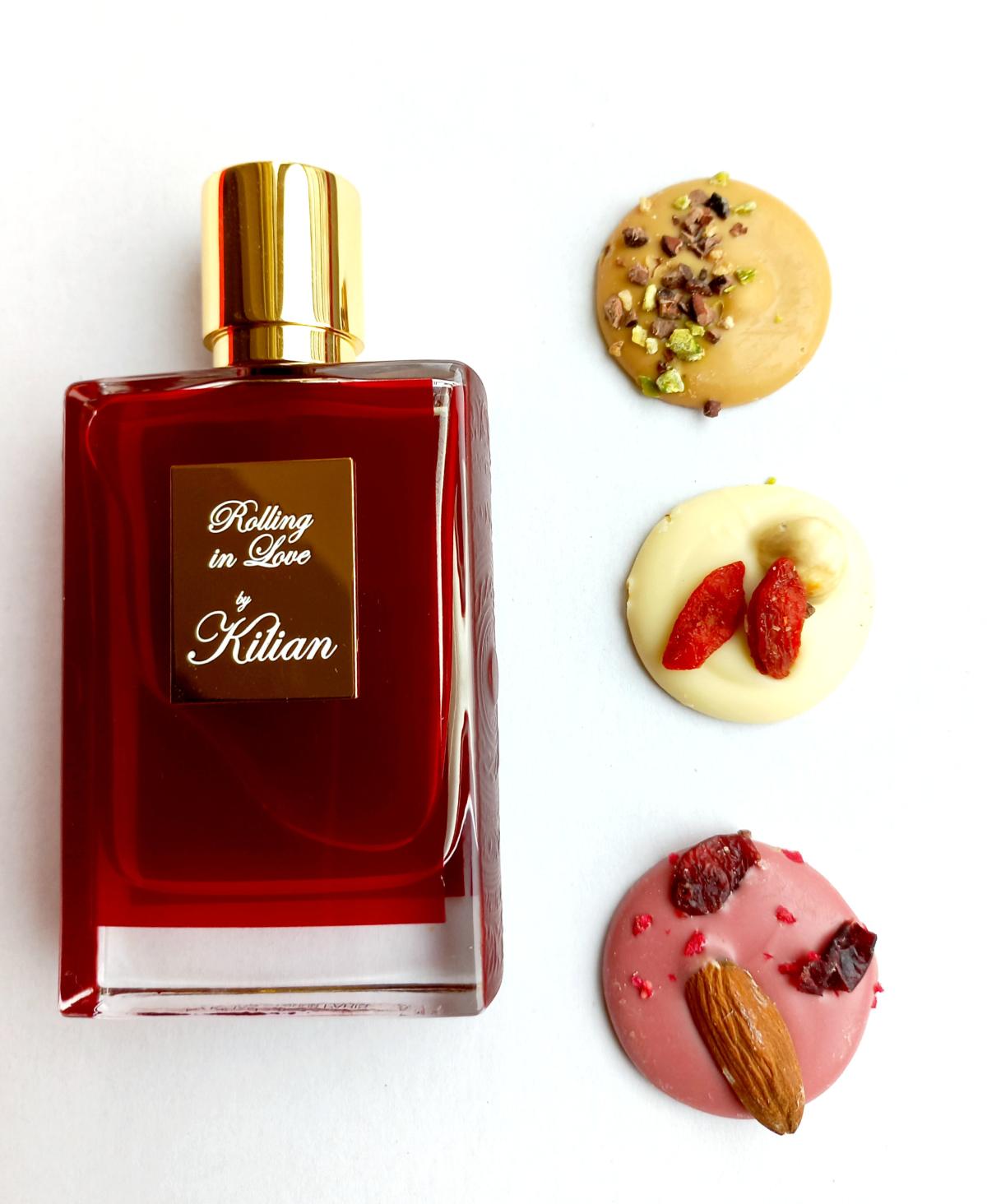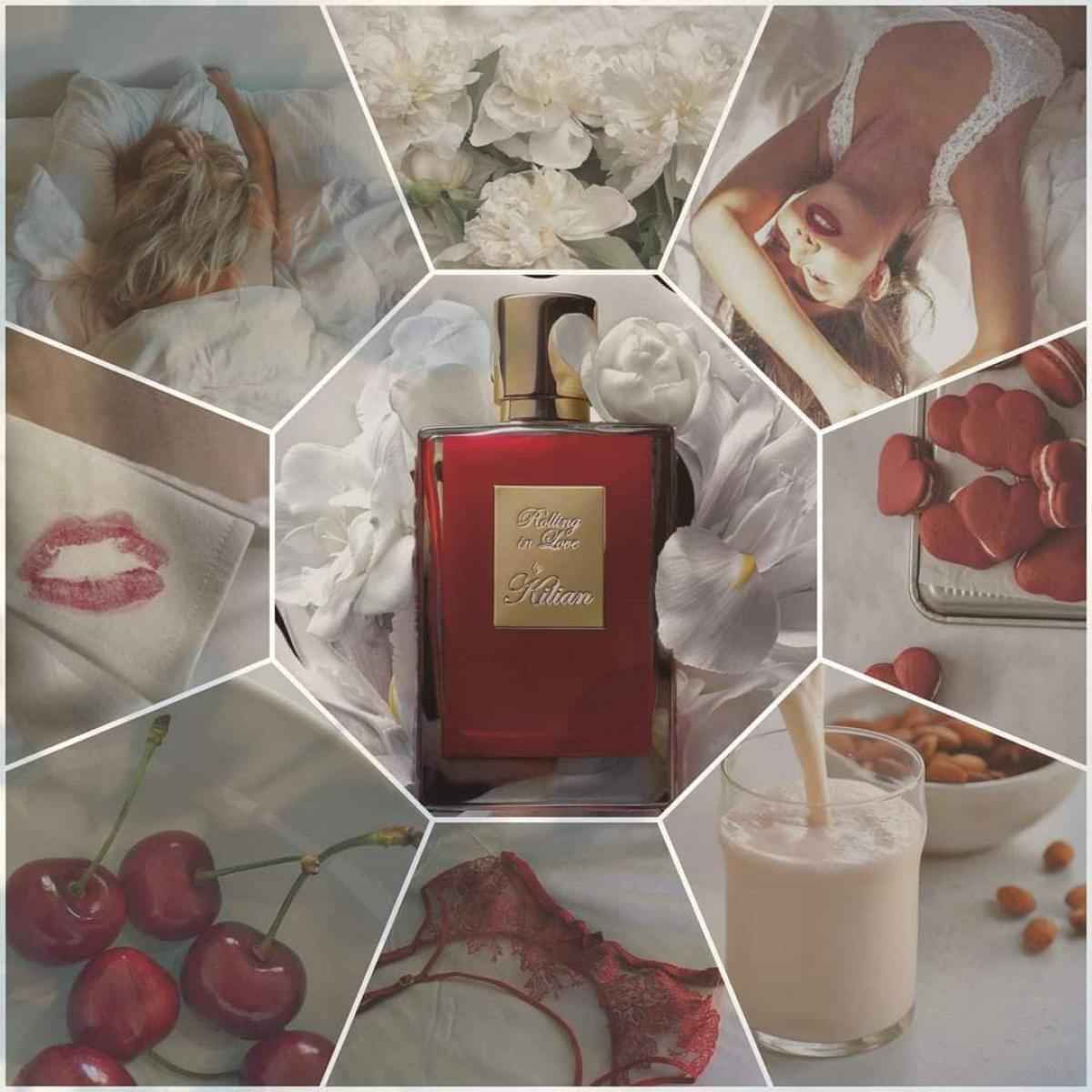 Rolling in Love od značky Kilian je spojením vůní Good Girl a Olympea. Ve vůni se prolínají tóny obou parfémů. Při rozprašování připomíná spíše C. H., ale jakmile zaschne, objeví se slané tóny charakteristické pro Olympeu. Souhlasím s předchozí recenzí, že z Good Girl odstranili kakao a kávu, aby přidali pořádnou dávku zelených mandlí a slaných, šťavnatých mandlí, které ji činí méně temnou. Jsou jasně vnímány smíchané s květinami, kosatcem, který jí dodává lehce stébelnatý nádech, a jemnou vanilkou. Je tak akorát sladká, nikoliv mazlavá, a přesto slaná. Přesněji řečeno, je to taková sladkost, jakou má Olympea, dobře vyvážená solí, ale s mnohem smyslnějším základem.