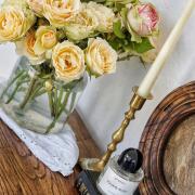 Chodila jsem kolem něj několik měsíců), když jsem si vybírala parfém na svatbu. Vyzkoušela jsem spoustu variant, některé jsem téměř přestala používat, ale vždycky mi přišla na mysl tahle růže. Nakonec jsem se na ní zastavila, oflakonila a vůbec toho nelituji. Je to stoprocentní trefa do toho, co jsem chtěla.