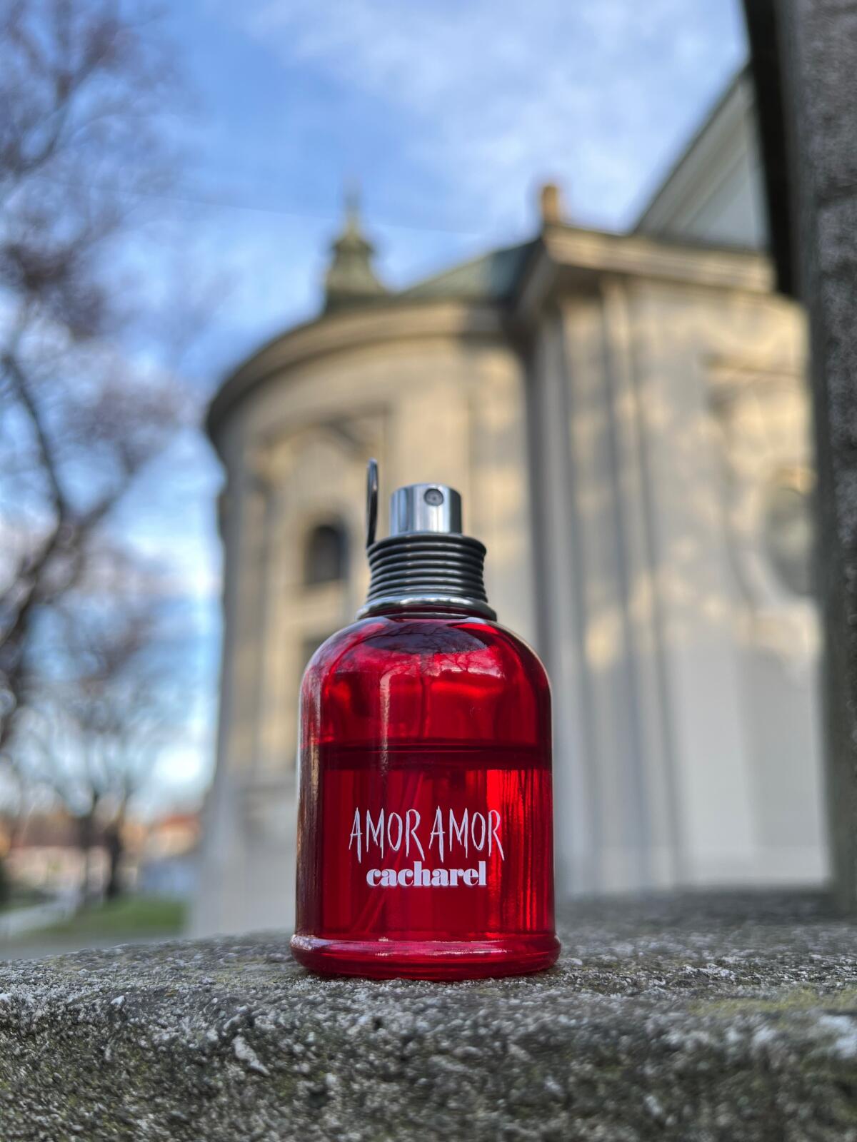 Amor Amor není ani svěží, ani lehká. Je chamtivý. Když ji nastříkáte, zasáhnou vás citrusy a zralá meruňka, přemíra růže a rybízu, pak se objeví bílé květiny a sladké základní tóny, které mně osobně nepřipadají vlezlé. Velmi dobře působí na pokožce, kde zůstává beze změny po celé hodiny, i na oblečení. Dobrá vůně. Nepovažuji ji za mladou esenci, parfémy Cacharel jimi nikdy nebyly, jsou strukturované a laděné, bez velkého vývoje, ale nikdy ne jednoduché.