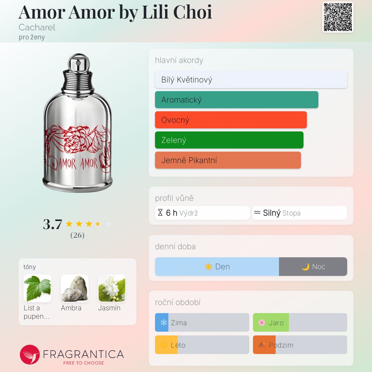 Amor Amor by Lili Choi podle Cacharel je Floral Fruity vůně pro ženy. Amor Amor by Lili Choi byl/a uveden/a v roce 2012. Vrchní tón je Černý rybíz ; střední tón jeJasmín Sambac ; základní tón je Ambra.