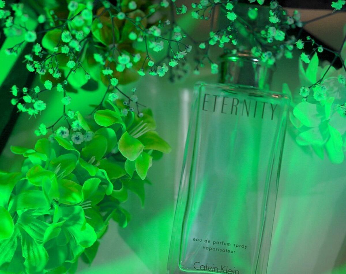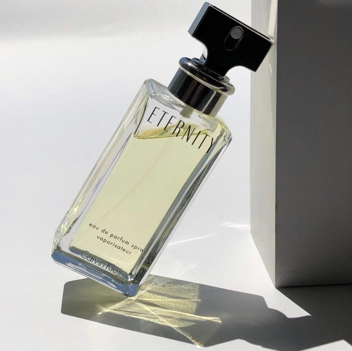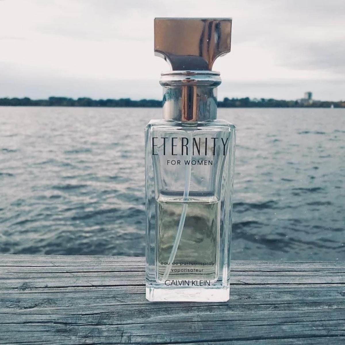 Eternity podle Calvin Klein je Floral vůně pro ženy. Eternity byl/a uveden/a v roce 1988. "Nosem" za touto vůní je Sophia Grojsman. Vrchní tóny jsou Zelené tóny, Frézie, Šalvěj, Citrusy a Mandarinka; střední tóny jsouKarafiát, Lilie, Konvalinka, Narcis, Měsíček, Fialka, Růže a Jasmín ; základní tóny jsou Pižmo, Otočník, Santalové dřevo, Jantar (ambra) a Pačuli.