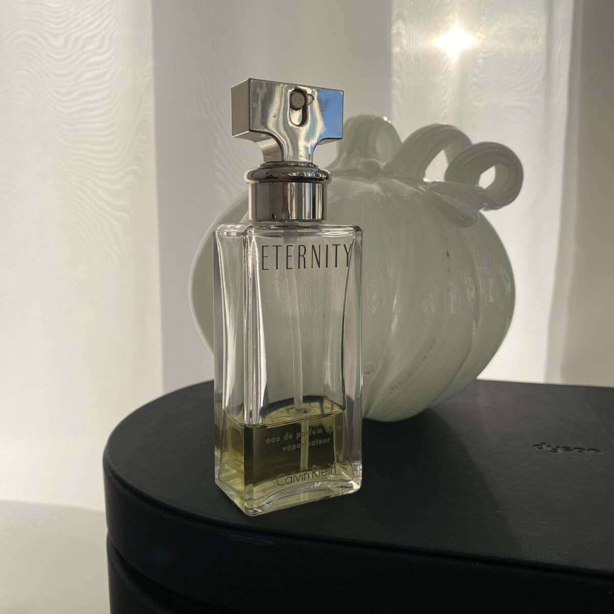 ETERNITY Edp, je to JEDINÝ parfém, který mám ve své sbírce a nosím ho už téměř 30 let! Teď je mi 47 let. Je to jediný parfém, který MILUJI tak dlouho a nikdy mě neomrzel. Tolik hezkých vzpomínek s ním ! :) Vzpomínám si, když můj bratr v 18 letech odešel z domova do USA na univerzitu a po návratu mi koupil tento skvost. Tehdy jsme ho v Portugalsku ještě neměli. Byl jsem na tom závislý ! Tenhle parfém jsem si vybrala na svůj svatební den :) A taky jsem si ho oblíbila. Taková šťastná, nostalgická vůně pro mě. Je to jasná a ostrá květinová, trochu kořeněná, z karafiátu, podle mě velmi klasická , ženská a elegantní. Tak dobře namíchaná! Opravdu skvost z devadesátých let! Pro mě je to mistrovské dílo! Ve své (+ 100 FB) sbírce parfémů nikdy nemohu bez ETERNITY být. Vždycky mám zálohy různých velikostí. Jeden velký flakon na vystavení, jeden malý na cesty... Používám také tělové mléko. Radost v lahvičce, to by mohla být moje podpisová vůně, ale opravdu ráda používám každý den jinou! Mám ráda rozmanitost :)