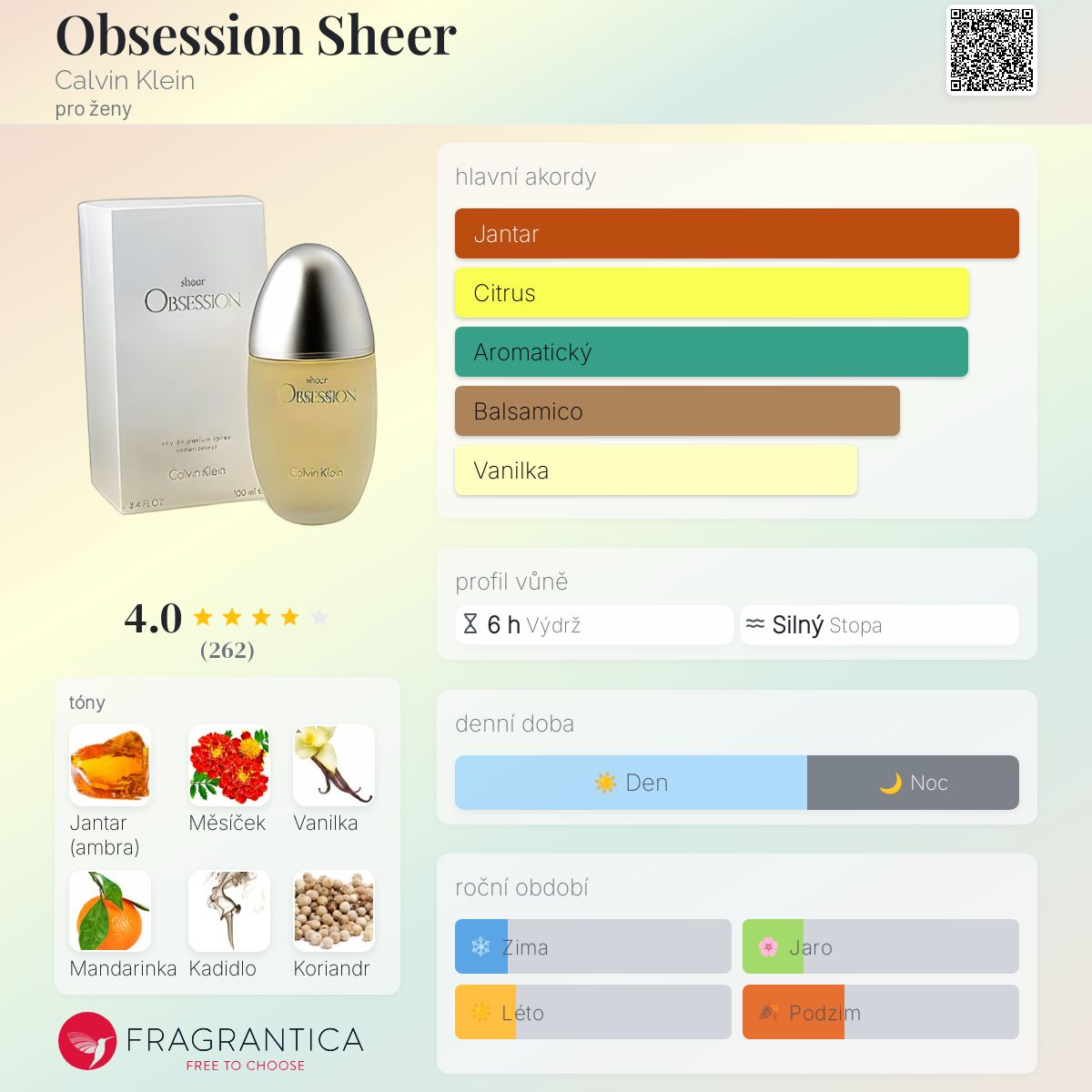 Obsession Sheer podle Calvin Klein je Orientální Floral vůně pro ženy. Obsession Sheer byl/a uveden/a v roce 2002. "Nosem" za touto vůní je René Morgenthaler.