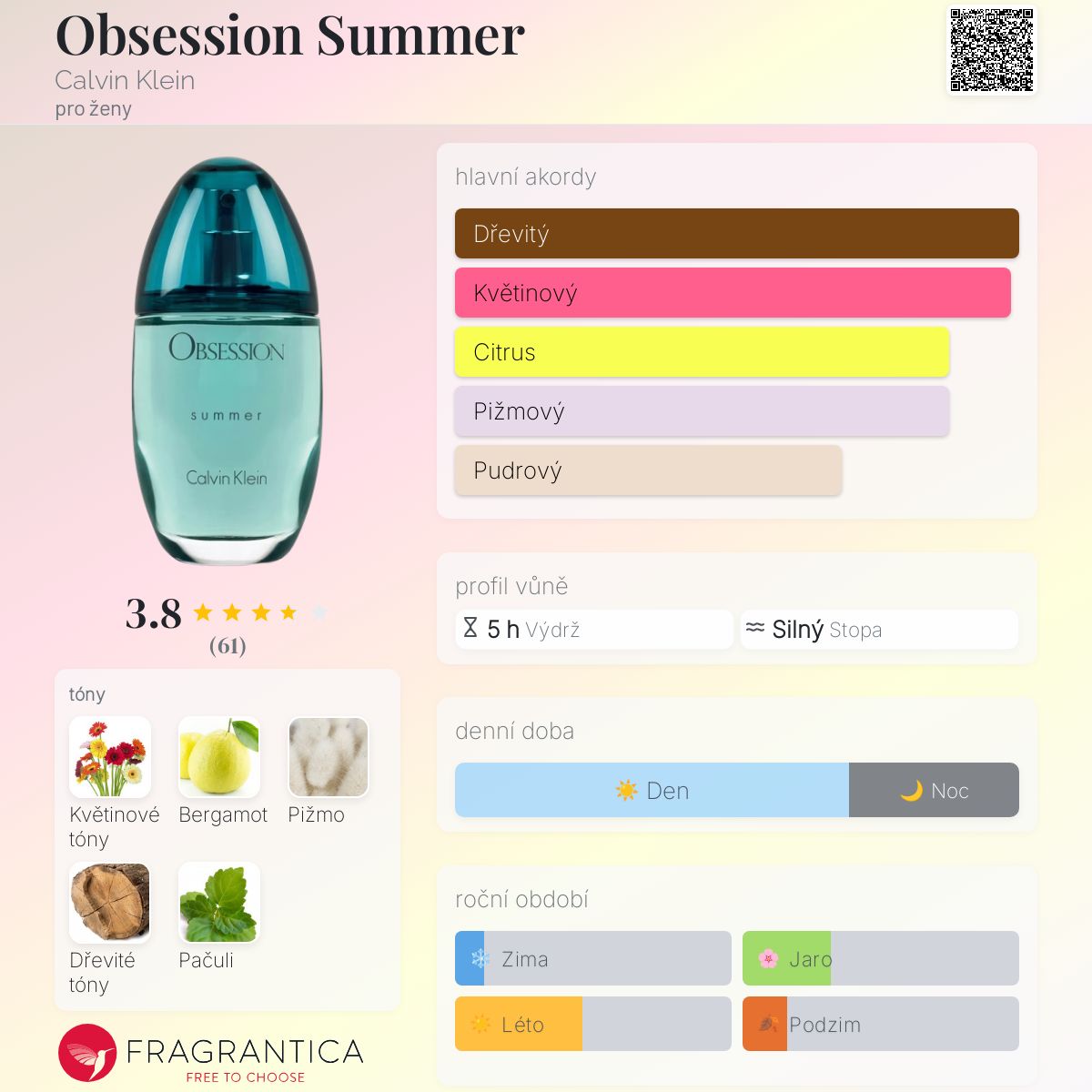 Obsession Summer podle Calvin Klein je Floral Woody Musk vůně pro ženy. Obsession Summer byl/a uveden/a v roce 2016.