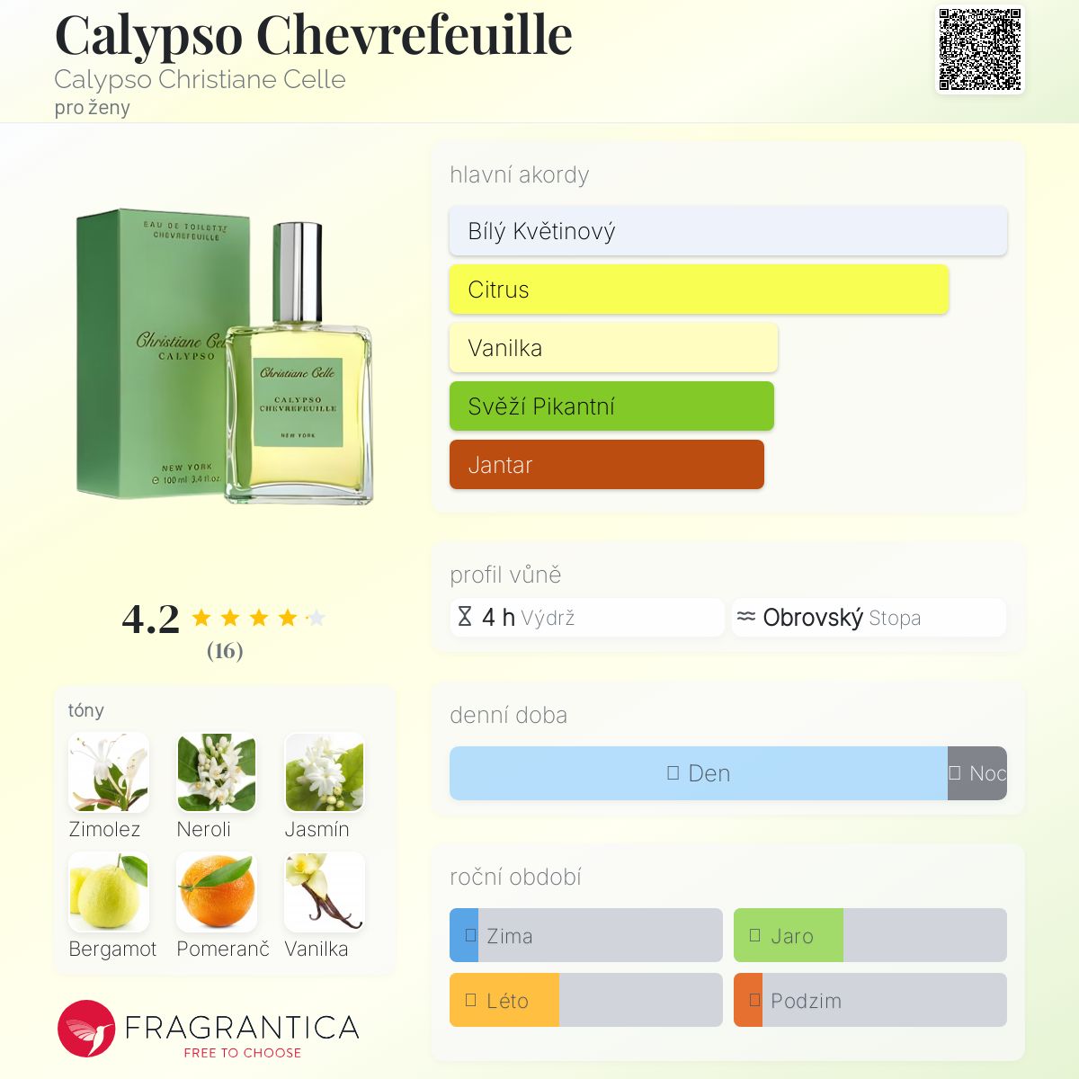 Calypso Chevrefeuille podle Calypso Christiane Celle je Floral vůně pro ženy. Vrchní tóny jsou Zimolez, Bergamot a Pomeranč; střední tóny jsouNeroli a Jasmín ; základní tóny jsou Vanilka a Ambra.