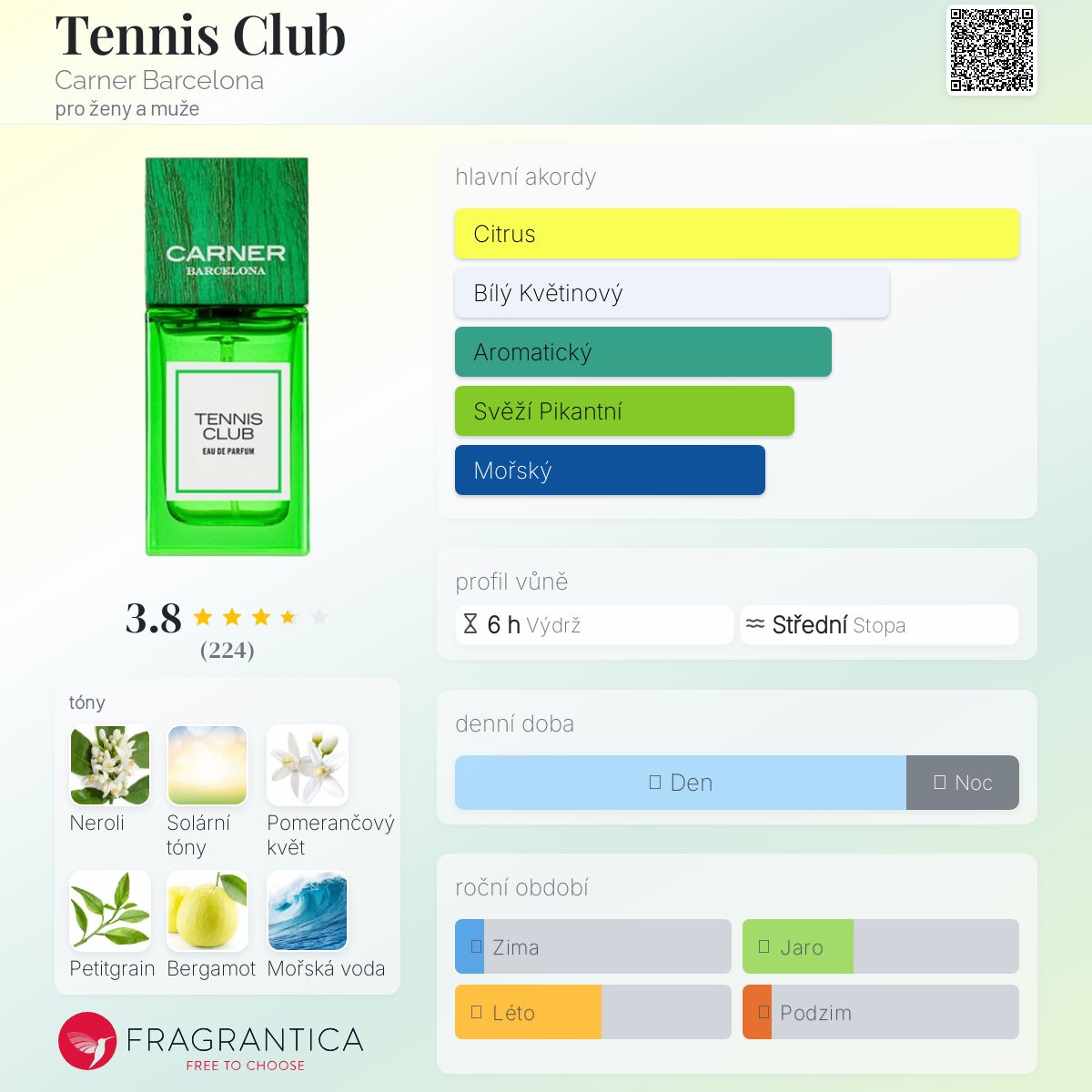 Tennis Club podle Carner Barcelona je vůně pro ženy a muže. Tennis Club byl/a uveden/a v roce 2022. Vrchní tóny jsou Petitgrain, Bergamot a Krvavý pomeranč; střední tóny jsouNeroli, Pomerančový květ a Mořská voda ; základní tóny jsou Solární tóny, Pižmo a Cedr.