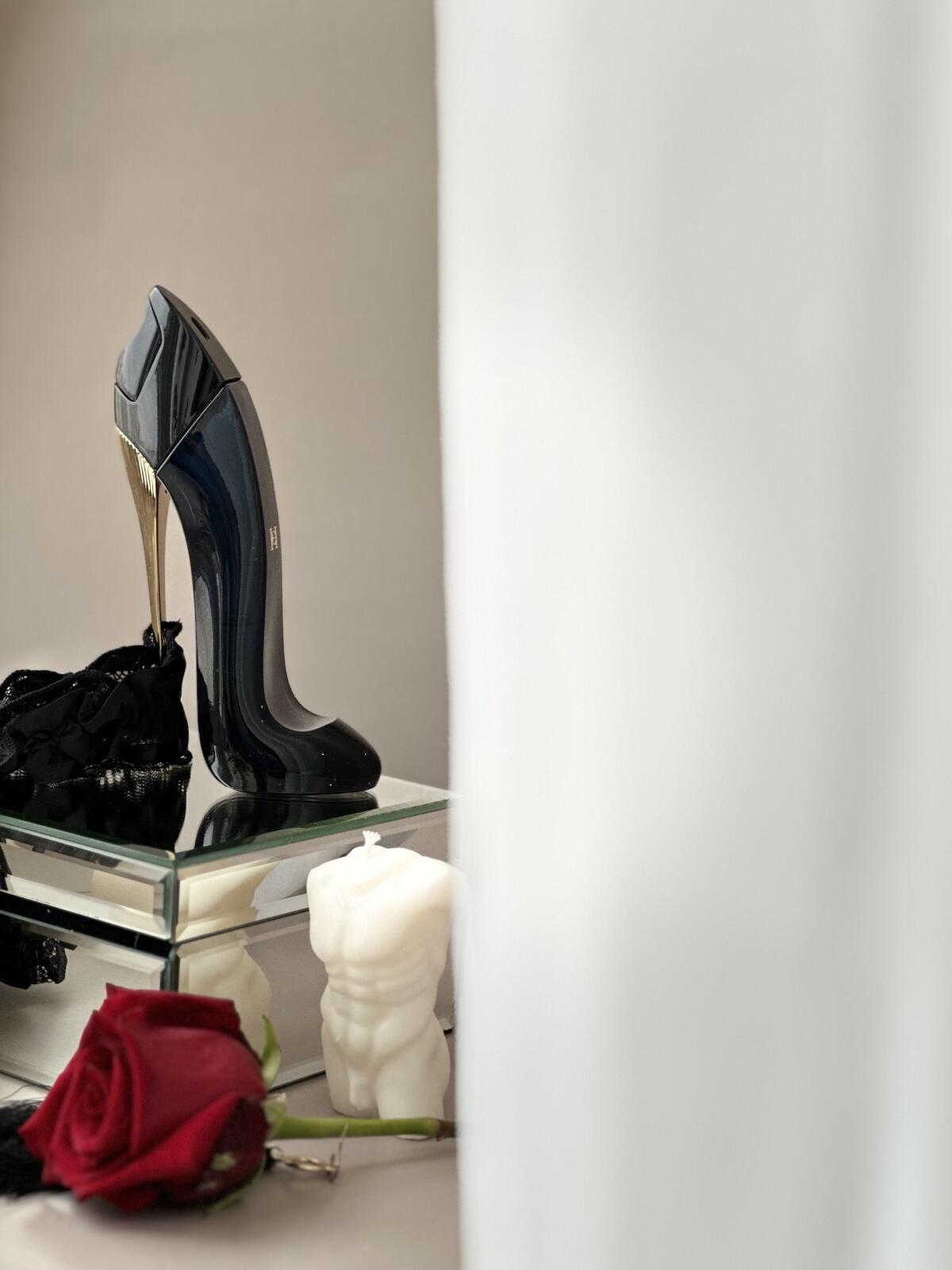 Good Girl je zdánlivě banální parfém, pokud se na něj podíváte z hlediska inovace, je to parfém, který voní jako čistý z roku 2016, něco již viděného, když si ho nastříkáte na zápěstí, první, co vás napadne, je "nic nového pod sluncem". Když však necháte uplynout deset minut, objevíte, jaký obrat nastane, květinám dominuje BÍLÁ čokoláda, která je mnohem méně sladká, než by kdokoli čekal, pudrová a suchá čokoláda, která vede vůni až do konce. Osobně mi tyto tóny připadají vlezlé, ale snažím se být objektivní, v tomto parfému má čokoláda (není hořká ani pralinková, je vysloveně bílá) osobnost; čokoláda, která je čokoládová, mlžná, mlhavá, atalkadová a především s jemným balzamickým a pryskyřičným pozadím. Něco jako mlha z květin a čokolády plovoucí na macerátu z jehličí a pryskyřice, s velmi jemným léčivým nádechem. Přiznám se, že aniž by to byla vůně, kterou mám ráda, přišla mi tato nóta originální a na úrovni, přináší do vůně vyzrálost. Myslím, že díky tomu ji mohou používat jak mladé dívky, tak zralé ženy. Good Girl je do jisté míry pologurmánská květinová vůně, která je komplexnější a vyzrálejší než radioaktivní sladkosti, na které jsme zvyklí. Právě proto si myslím, že název a design flakonu jí ubírají na kráse a zatěžují ji. Prezentována střízlivějším způsobem by byla vítězem. Bota na podpatku je jasným pokusem nabídnout láhev/trofej, která si získá mladé lidi, ve stylu slitku One Million, láhve s budoárovou heraldikou Juicy Couture nebo sklenice Invictus. A to je přesně to, co dělá z Good Girl (název je nevtipný) polovičatý produkt. Ráda bych tuto vůni viděla v nějakém organickém obalu ve stylu Peretti in Halston, v neprůhledném a elegantním flakonu jako u Poison nebo v nějaké lakované váze ve stylu chinoiseries.