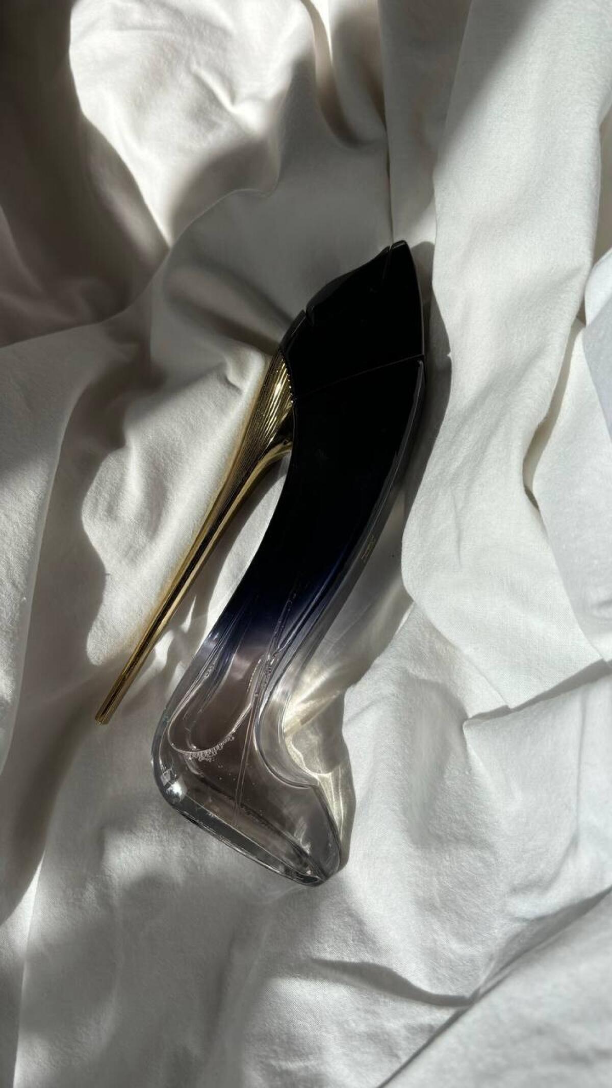 Tuto konkrétní verzi boty naprosto miluji. Taková mňamka! Karamel + kondenzované mléko + fazole tonka. Od toho se nedá odtrhnout. Mikro elegance je tak akorát, aby vás provoněla na celý den. Miluju ji i pro to, že ta sladkost není vlezlá, nelepí se, je přesně v dobrém slova smyslu lahodná, uklidňující, drahá. Mnohokrát jsem slyšela, že samotný flakon je vulgární. Já nevím. Mně se ten nápad v podobě pantofle moc líbí - neobvyklý a atraktivní. Zdobí můj toaletní stolek a dělá mi radost každý den a obsah mě těší ještě víc.