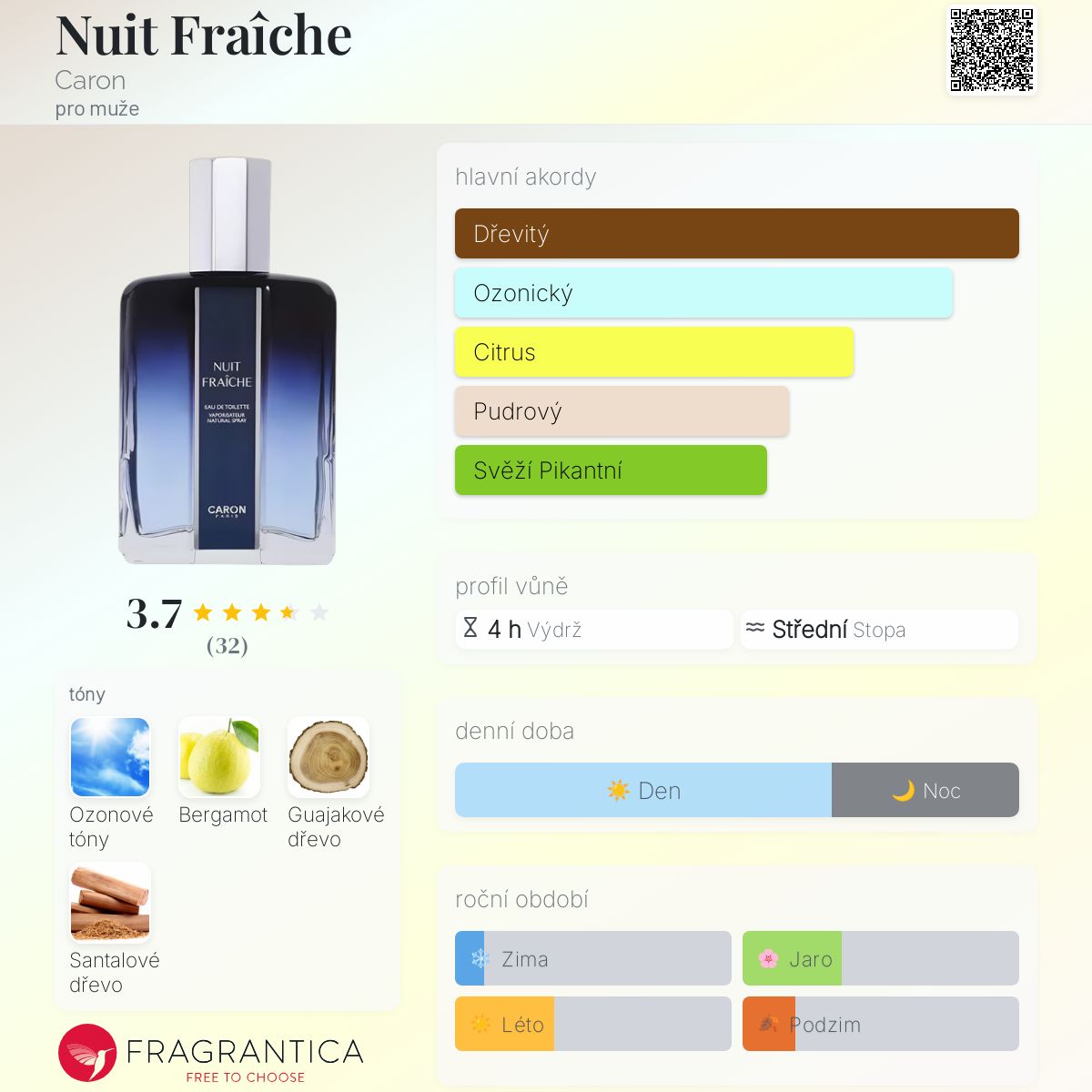 Nuit Fraîche podle Caron je Woody vůně pro muže. Nuit Fraîche byl/a uveden/a v roce 2019.