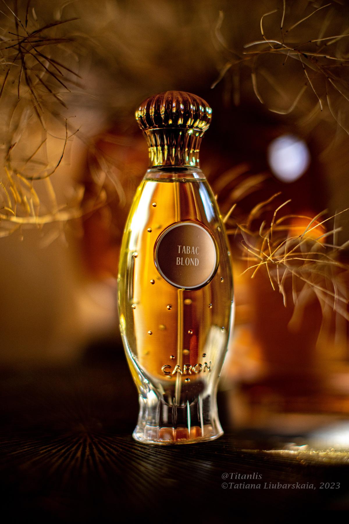 Tabac Blond podle Caron je Leather vůně pro ženy. Tabac Blond byl/a uveden/a v roce 1919. "Nosem" za touto vůní je Ernest Daltroff. Vrchní tóny jsou Karafiát, Kůže a Lipový květ; střední tóny jsouKosatec, Ylang-Ylang a Vetiver ; základní tóny jsou Vanilka, Pižmo, Pačuli a Virginský cedr.