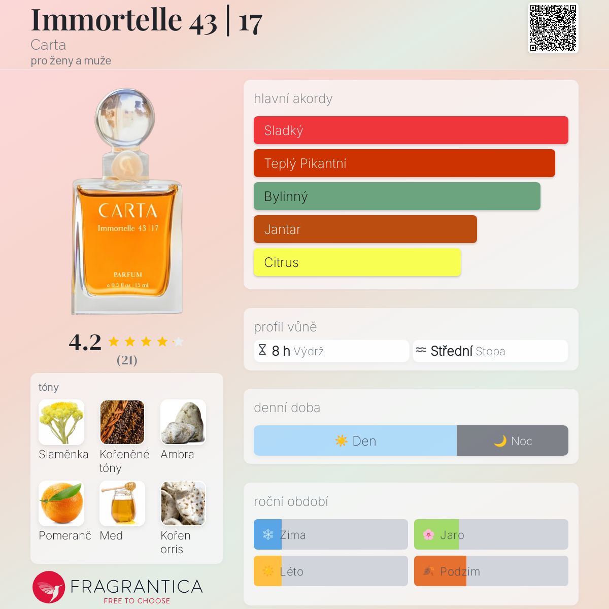 Immortelle 43 | 17 podle Carta je Orientální Floral vůně pro ženy a muže. Immortelle 43 | 17 byl/a uveden/a v roce 2020. "Nosem" za touto vůní je Heather D'Angelo.