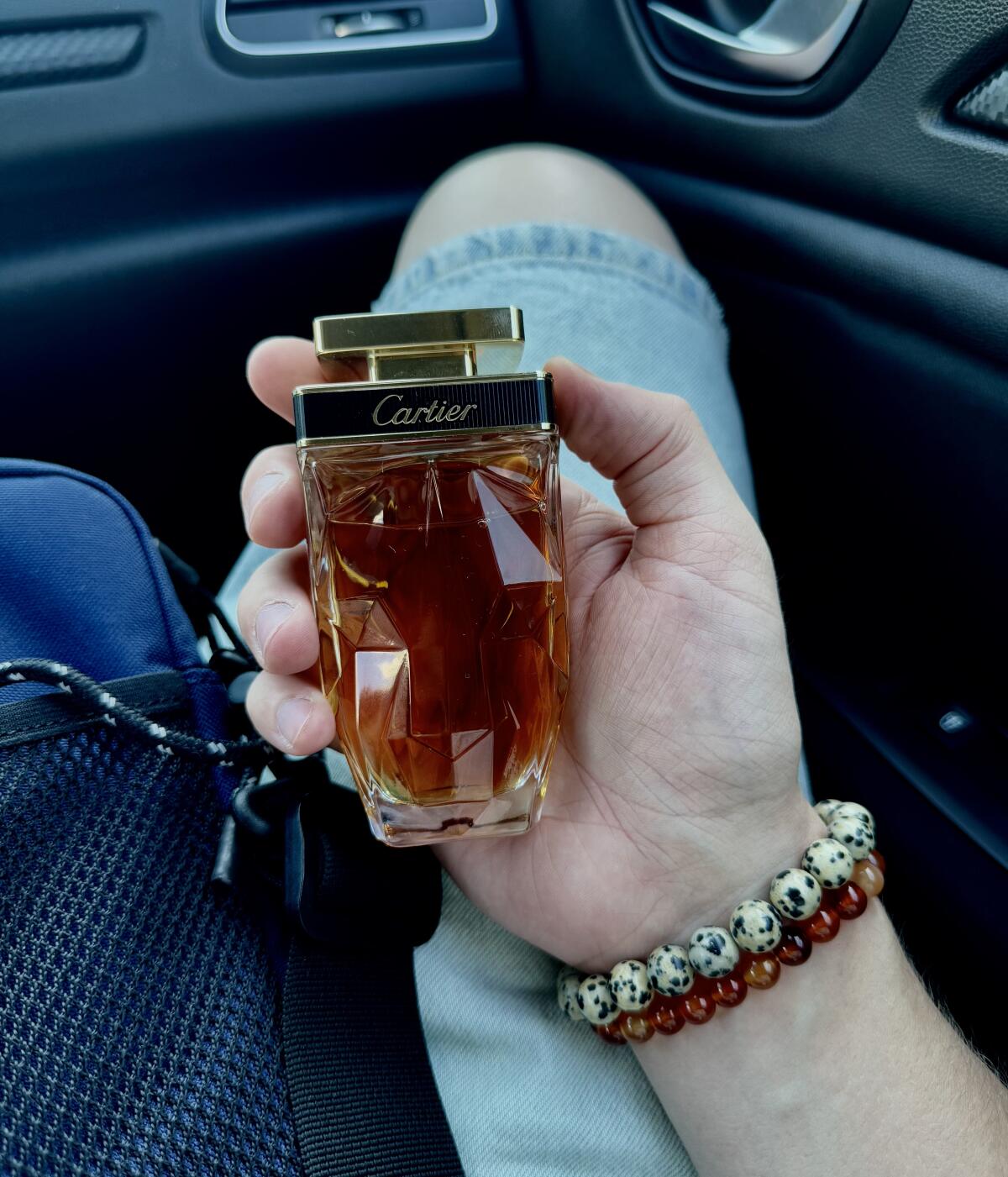 Včera jsem ho vyzkoušela, byl mi nabídnut jako klenot kolekce Cartier. Je podmanivá, chypre par excellence, pižmová, vyvážená a zároveň sofistikovaná. Na nošení stačí pár kapek a ne víc, protože je silná a výpary vyzařují pomalu, jako by tekutina měla řízenou rychlost odpařování, která zajišťuje její věčné trvání.