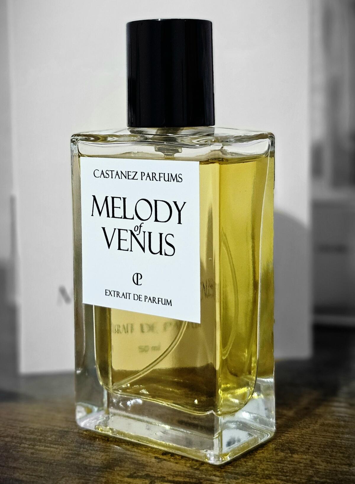 Melody of Venus podle Castanez Parfums je Orientální Floral vůně pro ženy a muže. Melody of Venus byl/a uveden/a v roce 2023. Melody of Venus byl/a vytvořen/a José Nuñez a Cecilia Castañeda. Vrchní tóny jsou Mučenka, Guava, Grapefruit, Rebarbora, Černý rybíz, Pomeranč a Zelené jablko; střední tóny jsouNeroli, Karafiát, Zimolez, Jasmín a Konvalinka ; základní tóny jsou Jantar (ambra), Mandle, Pačuli, Vanilka a Kokos.