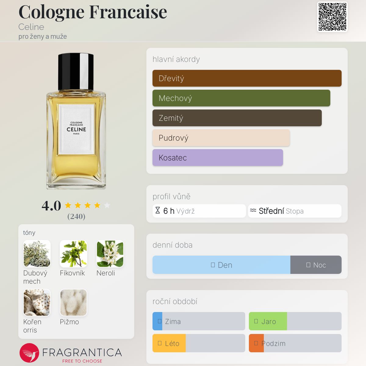 Cologne Francaise podle Celine je Floral Woody Musk vůně pro ženy a muže. Cologne Francaise byl/a uveden/a v roce 2019.