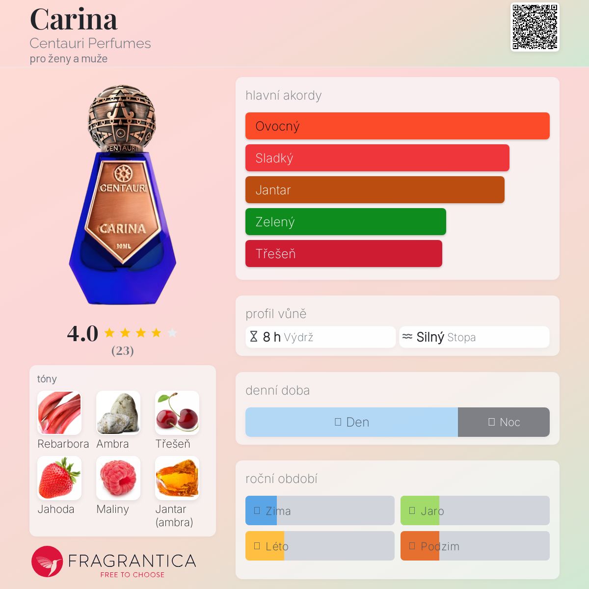 Carina podle Centauri Perfumes je Floral Fruity vůně pro ženy a muže. Toto je nová vůně. Carina byl/a uveden/a v roce 2024.
