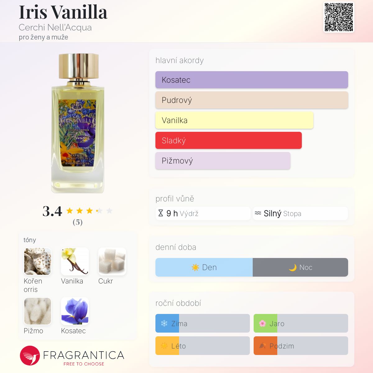 Iris Vanilla podle Cerchi Nell’Acqua je vůně pro ženy a muže. Toto je nová vůně. Iris Vanilla byl/a uveden/a v roce 2025.