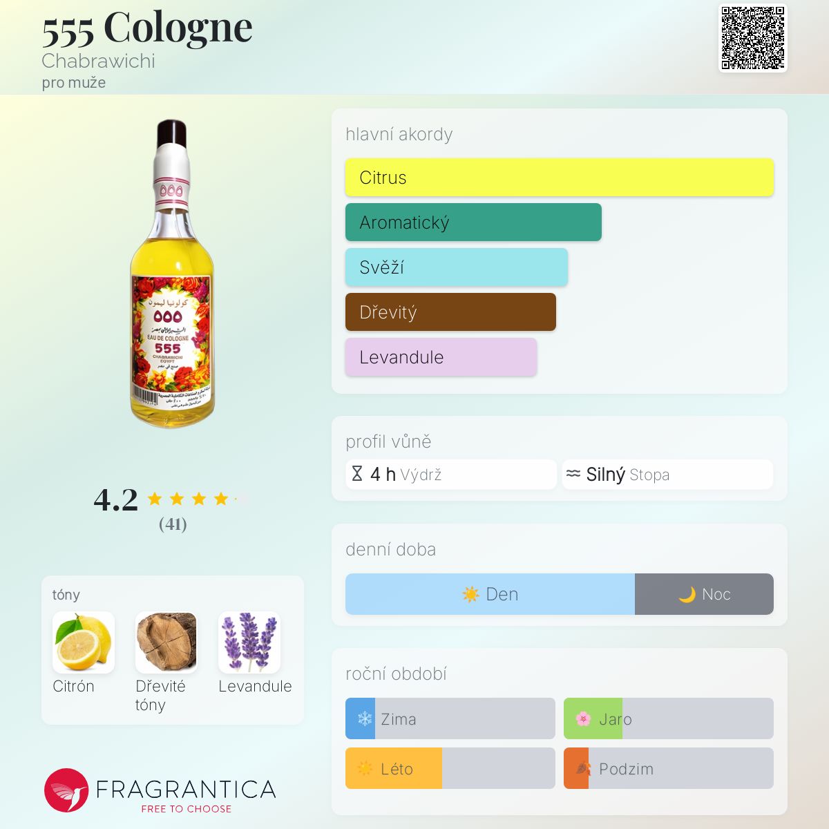 555 Cologne podle Chabrawichi je Citrus Aromatic vůně pro muže. 555 Cologne byla spuštěna během 1920.