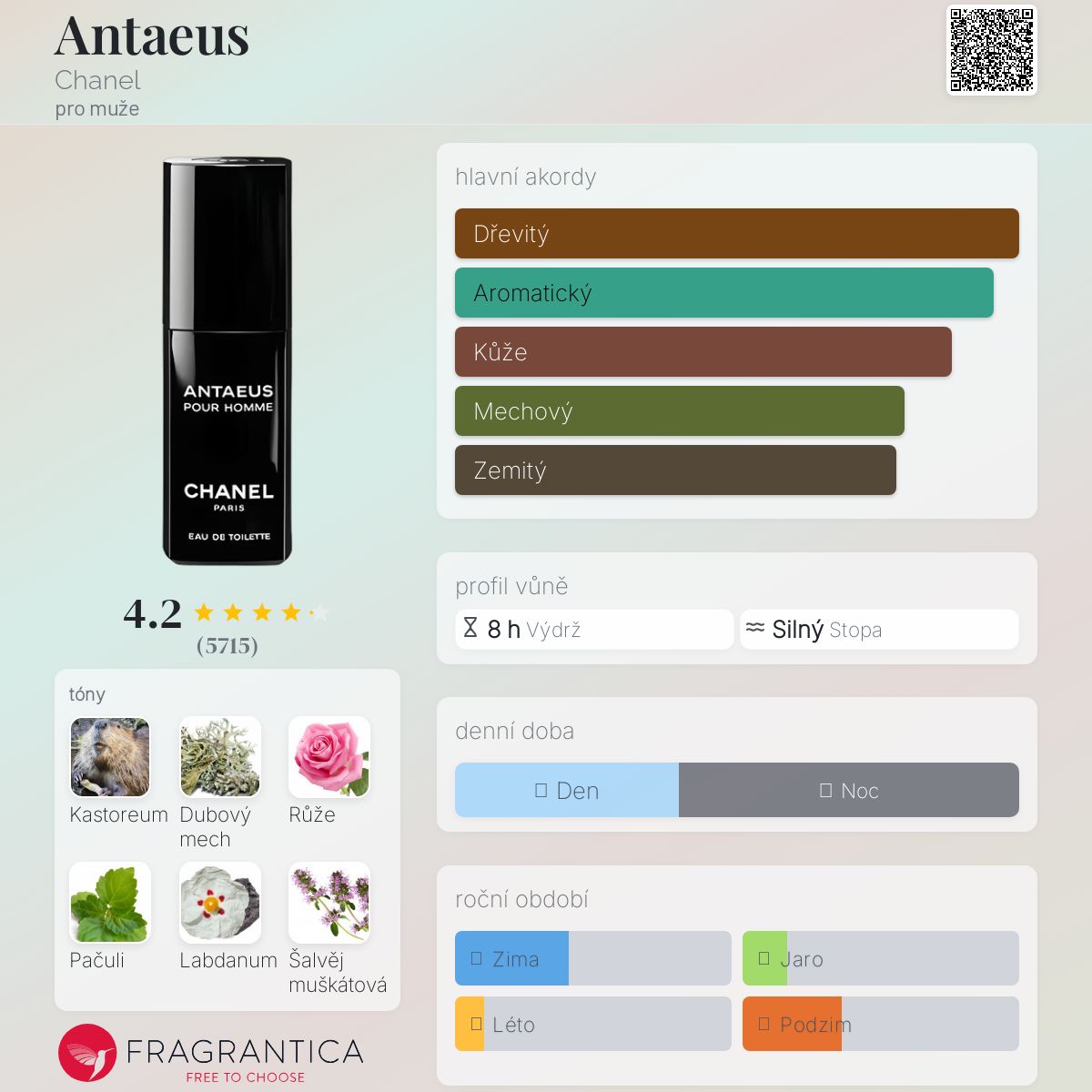 Právě tuto sílu nacházíme v Antaeovi idealizovaném značkou Chanel; silný dřevitý chyprový parfém, který nás uvádí do kontaktu s prvky, jež nám dodávají silnou kůži, ochranu založenou na labdanum, dubovém mechu, pačuli a spoustě kastorea, která nás činí neporazitelnými!