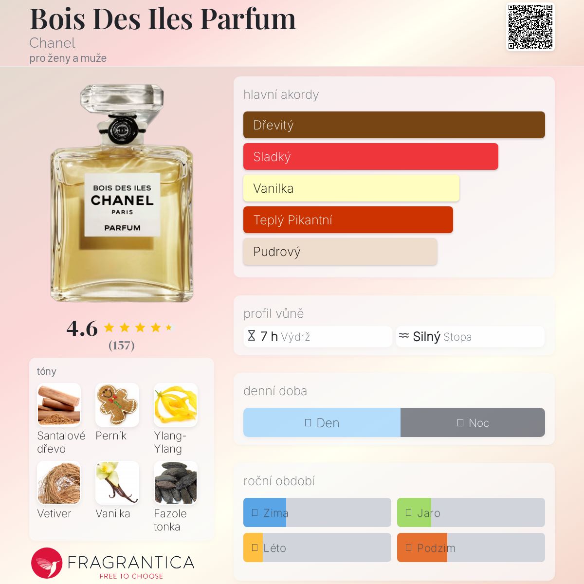 Bois Des Iles Parfum podle Chanel je Orientální Woody vůně pro ženy a muže. Bois Des Iles Parfum byl/a uveden/a v roce 1926. "Nosem" za touto vůní je Ernest Beaux.