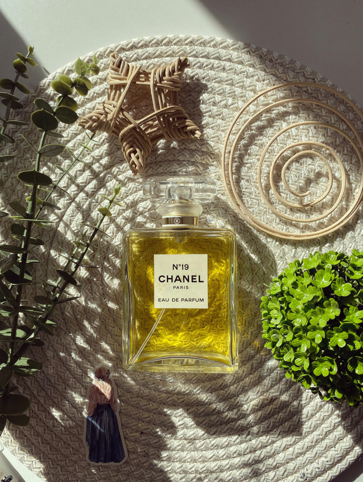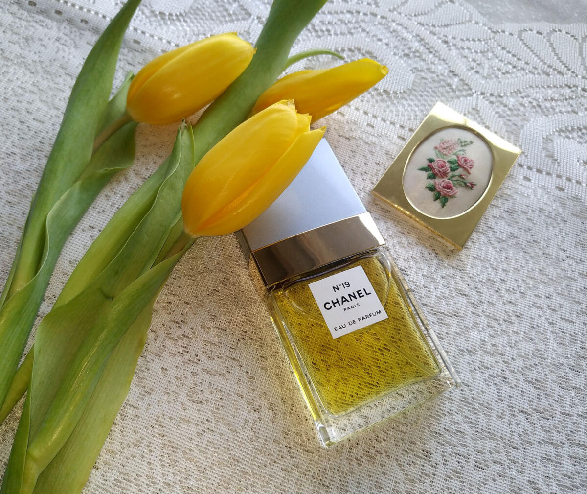 Je v ní něco, co mi připomnělo sílu Mitsouko; mohla by být jeho zeleným bratrem. Nicméně 19 má rozpoznatelnou DNA Chanelu, stejně jako Mitsouko je nepochybně Guerlain.