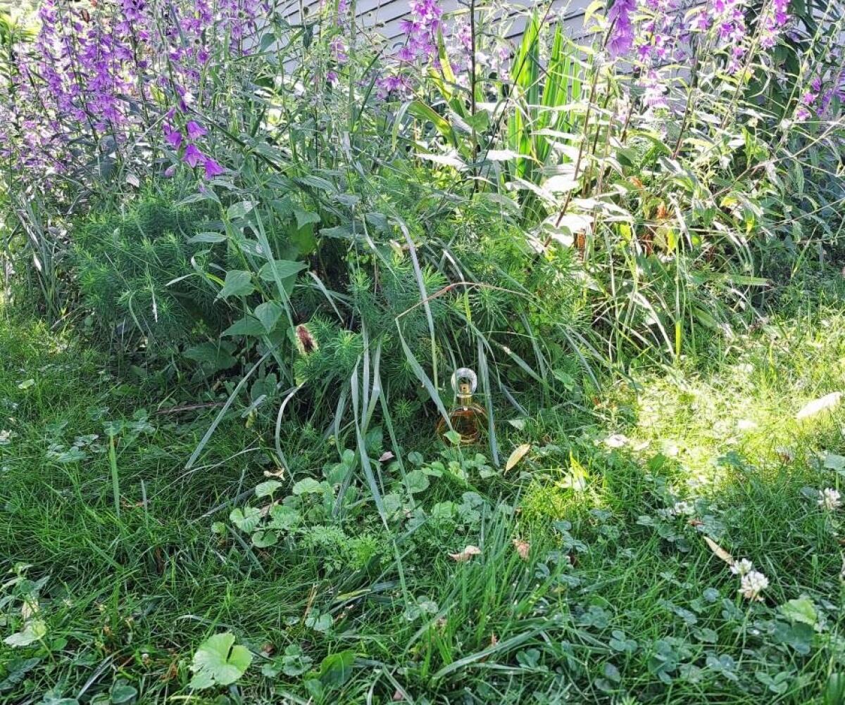 Tenhle parfém evokuje ty dny v celé jejich podstatě: teplotu, vlhkost atmosféry, to, jak jsem byl šťastný ve své bezstarostné nevinnosti, světlo těch dnů, které už jsou delší, vzdálené praskání ohně pod širým nebem, mokrý břečťan, který se zelenal po stěnách domu, prach v místnostech, které se nikdy nepoužívaly, pocit, že mám studené nohy, téměř kovový lesk promočené země?