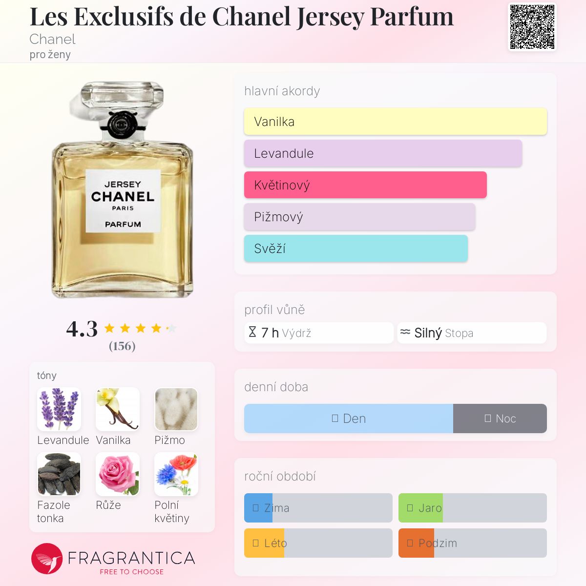 Les Exclusifs de Chanel Jersey Parfum podle Chanel je Floral Woody Musk vůně pro ženy. Les Exclusifs de Chanel Jersey Parfum byl/a uveden/a v roce 2014. "Nosem" za touto vůní je Jacques Polge.
