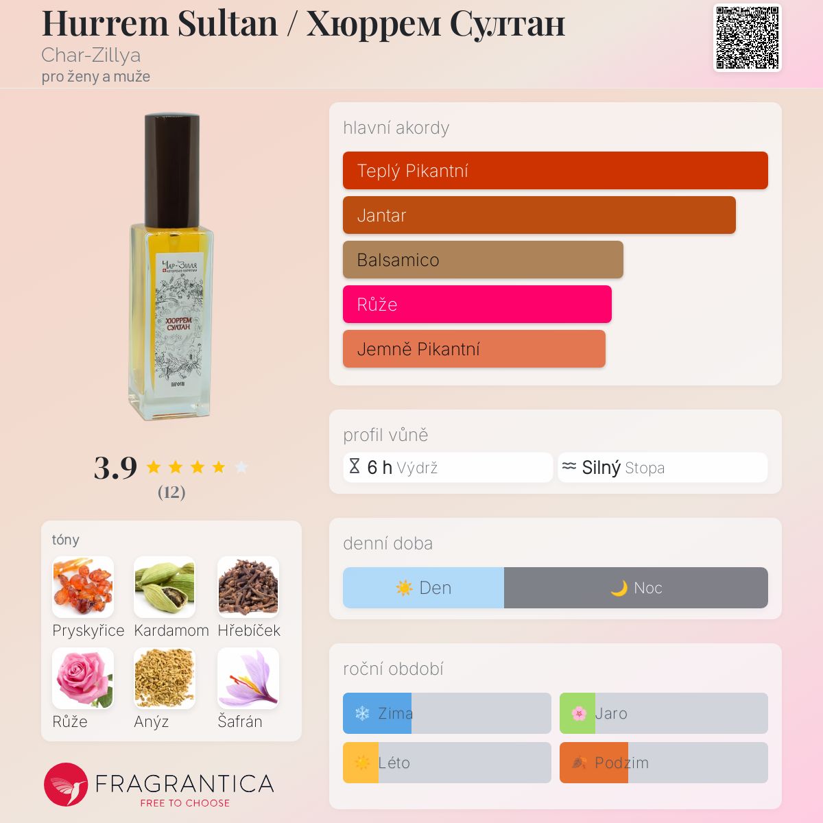 Hurrem Sultan / Хюррем Султан podle Char-Zillya je Orientální vůně pro ženy a muže. Hurrem Sultan / Хюррем Султан byl/a uveden/a v roce 2018. "Nosem" za touto vůní je Ksandra Osinina.