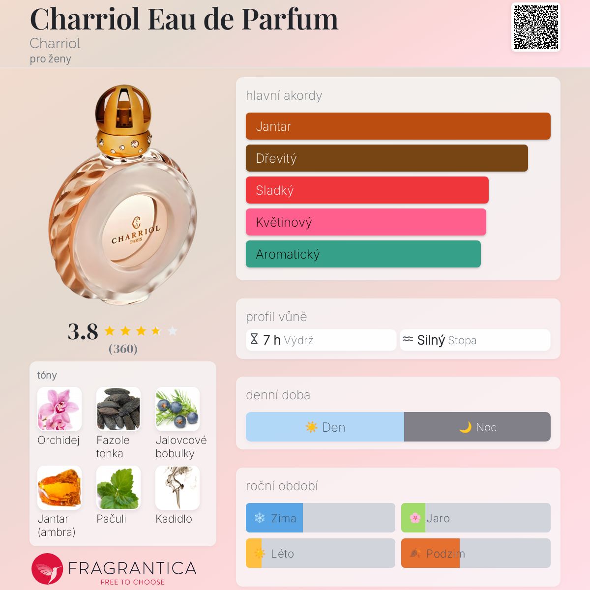 Charriol Eau de Parfum podle Charriol je Orientální Woody vůně pro ženy. Charriol Eau de Parfum byl/a uveden/a v roce 2008. "Nosem" za touto vůní je Guillaume Flavigny.