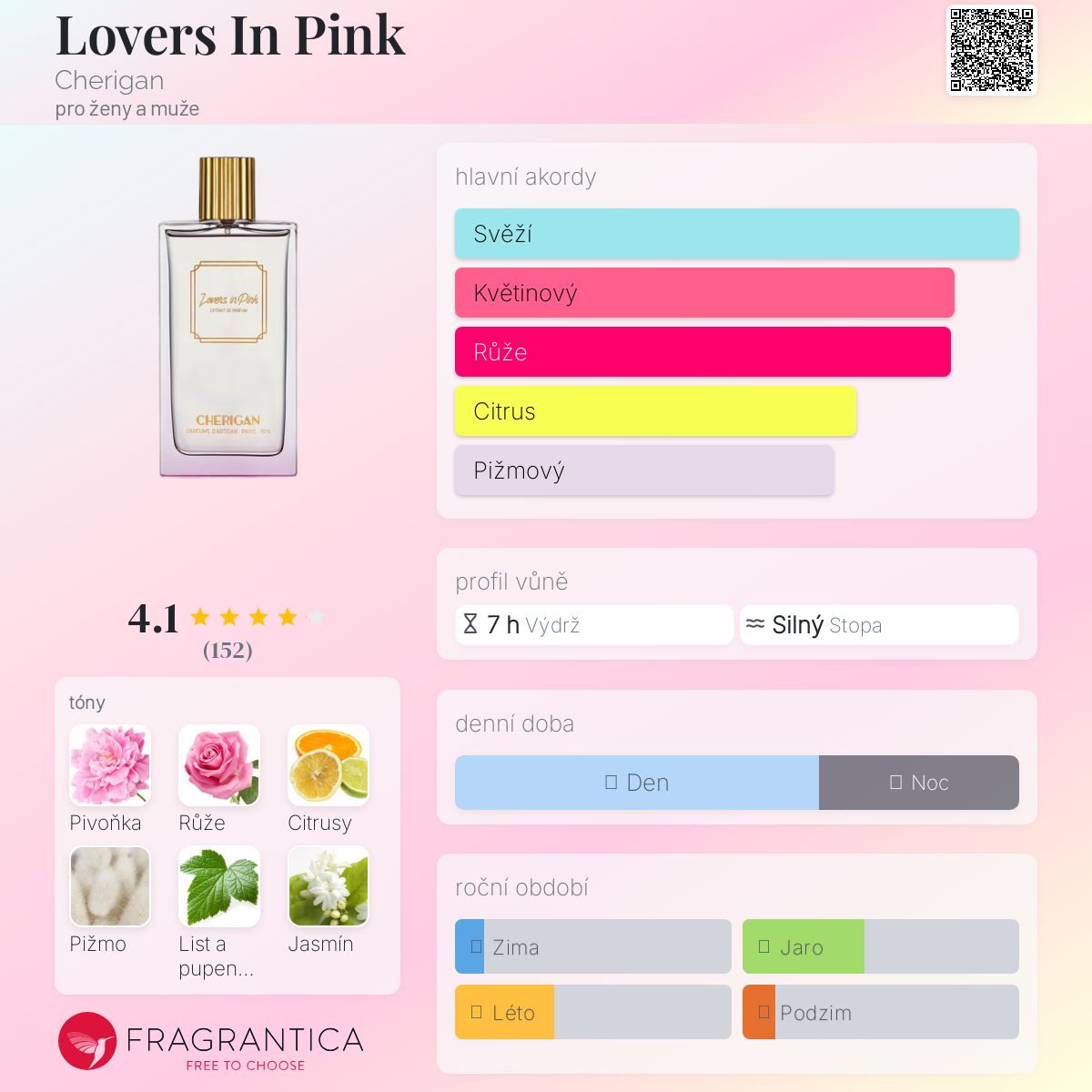 Lovers in Pink je květinově-muškátový parfém, v němž dominuje duo růže s lístky černého rybízu (velmi osvědčené duo), velmi prostorný, lehký. Jsou velmi optimistické, příjemné na nošení, prostě hezké.