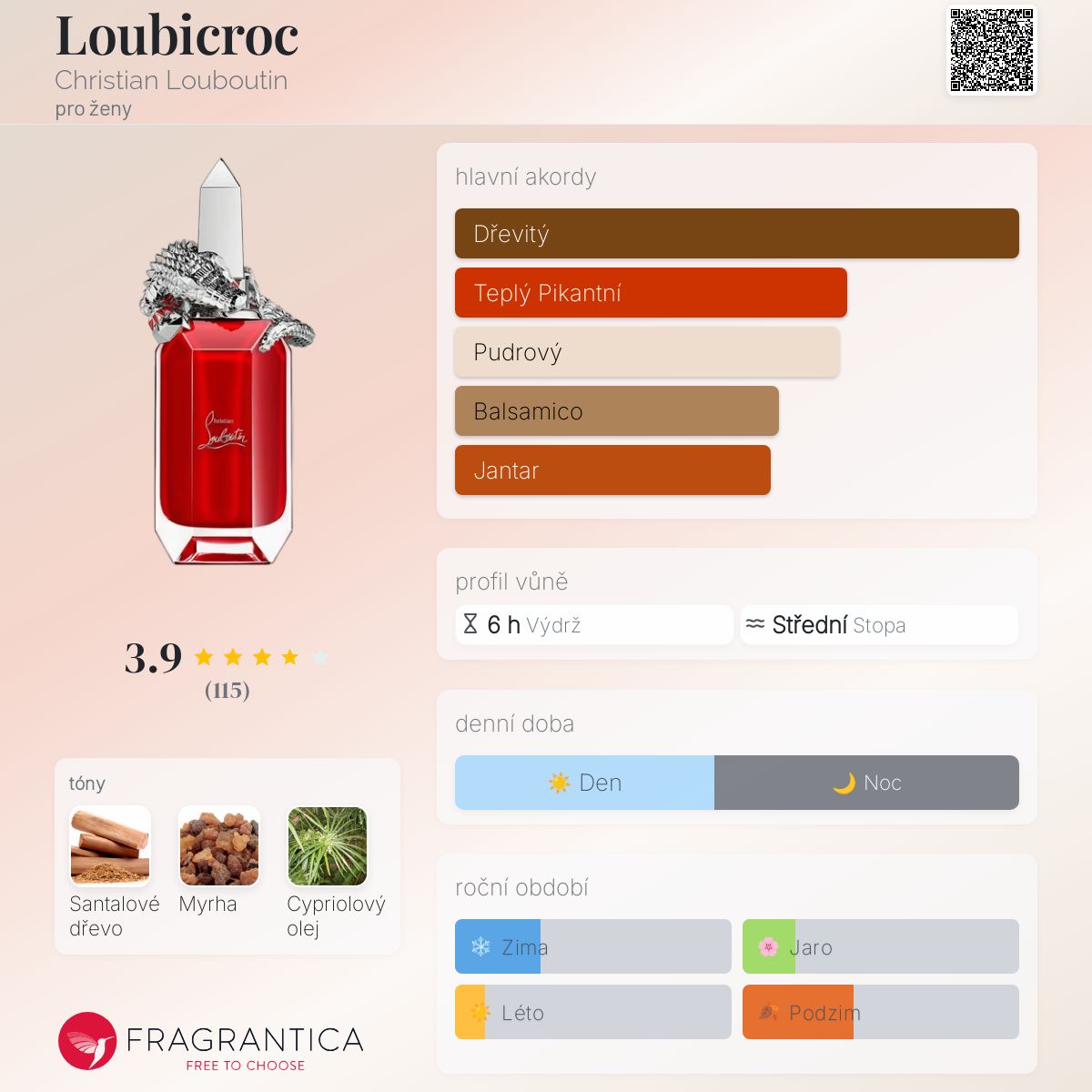 Loubicroc podle Christian Louboutin je Orientální Spicy vůně pro ženy. Loubicroc byl/a uveden/a v roce 2020. "Nosem" za touto vůní je Daphné Bugey. Vrchní tón je Myrha ; střední tón jeCypriolový olej ; základní tón je Santalové dřevo.