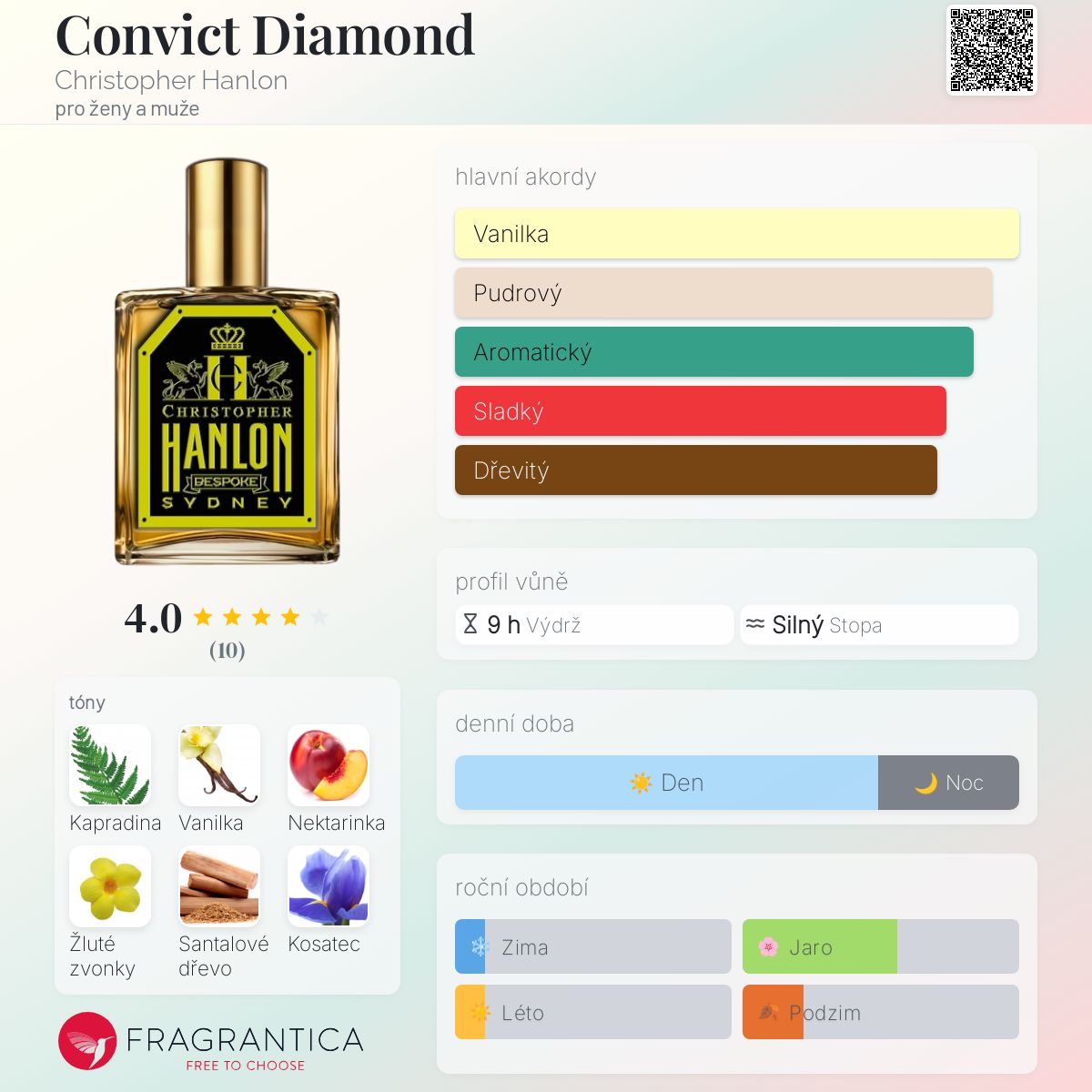 Convict Diamond podle Christopher Hanlon je Floral Green vůně pro ženy a muže. Convict Diamond byl/a uveden/a v roce 2019. "Nosem" za touto vůní je Christopher Hanlon.