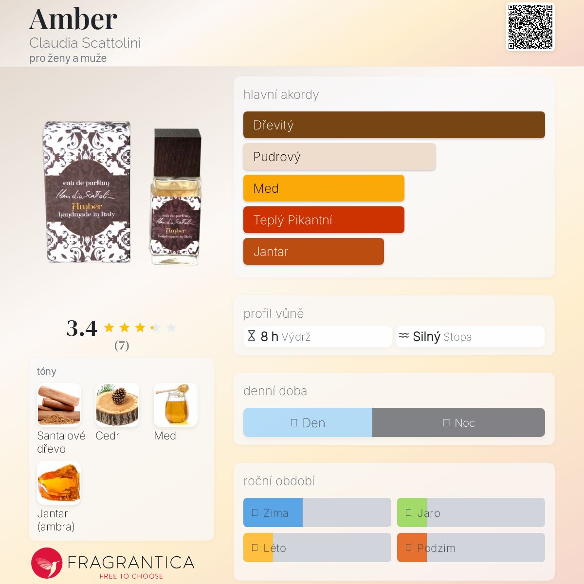 Amber podle Claudia Scattolini je Orientální vůně pro ženy a muže. Amber byl/a uveden/a v roce 2016. "Nosem" za touto vůní je Claudia Scattolini.