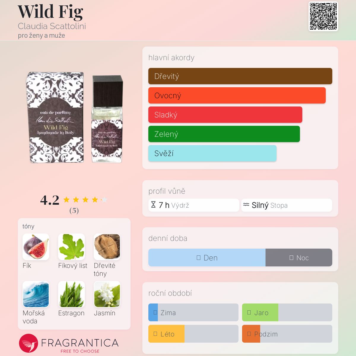Wild Fig podle Claudia Scattolini je Floral Woody Musk vůně pro ženy a muže. Wild Fig byl/a uveden/a v roce 2016. "Nosem" za touto vůní je Claudia Scattolini. Vrchní tóny jsou Fík, Fíkový list, Mořské tóny a Estragon; střední tóny jsouJasmín a Akát ; základní tóny jsou Vzácné dřevo a Jantar (ambra).