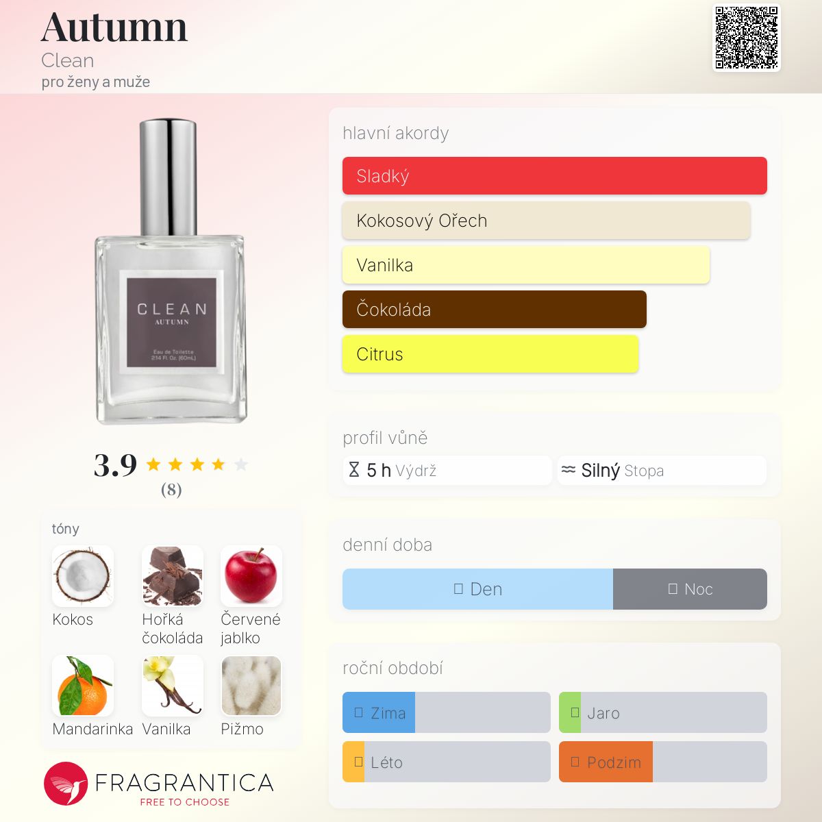 Autumn podle Clean je vůně pro ženy a muže. Autumn byl/a uveden/a v roce 2018. Vrchní tóny jsou Červené jablko a Mandarinka; střední tóny jsouKokos, Hořká čokoláda a Vanilka ; základní tóny jsou Pižmo a Haitský vetiver.