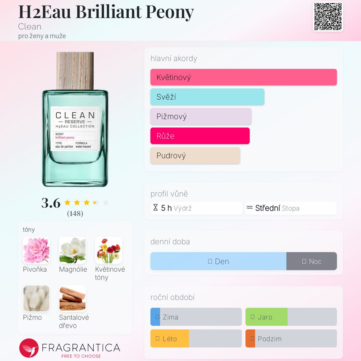 H2Eau Brilliant Peony podle Clean je vůně pro ženy a muže. H2Eau Brilliant Peony byl/a uveden/a v roce 2023. Vrchní tón je Růžová pivoňka ; střední tóny jsouMagnólie a Květinové tóny ; základní tóny jsou Pižmo a Santalové dřevo.