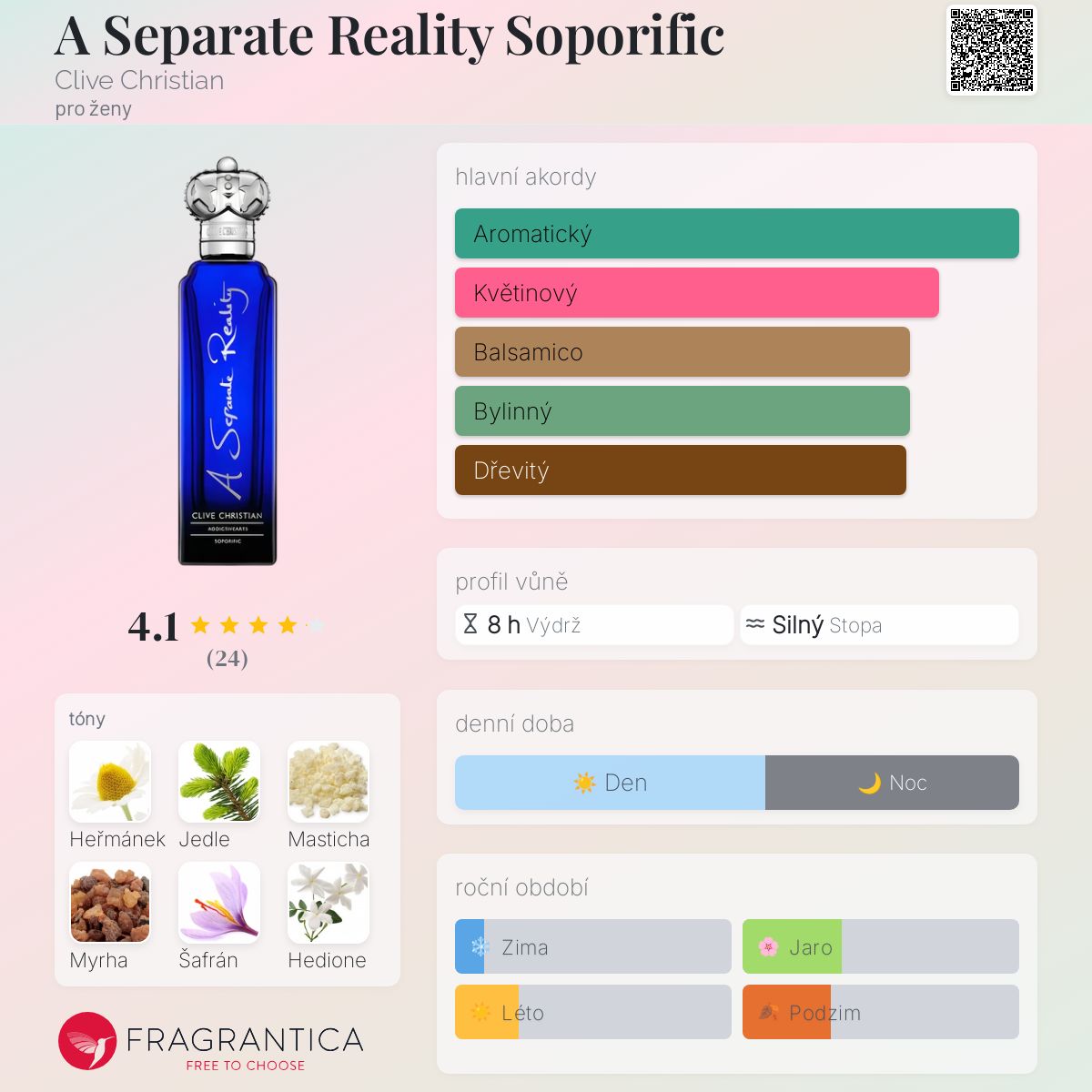 A Separate Reality Soporific podle Clive Christian je Chypre Floral vůně pro ženy. A Separate Reality Soporific byl/a uveden/a v roce 2018.