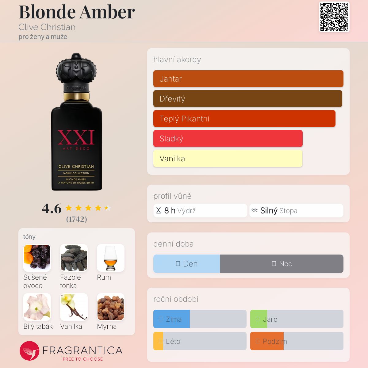 Velmi krásná a velmi útulná vůně! Taková elegantní, teskná sladkost.