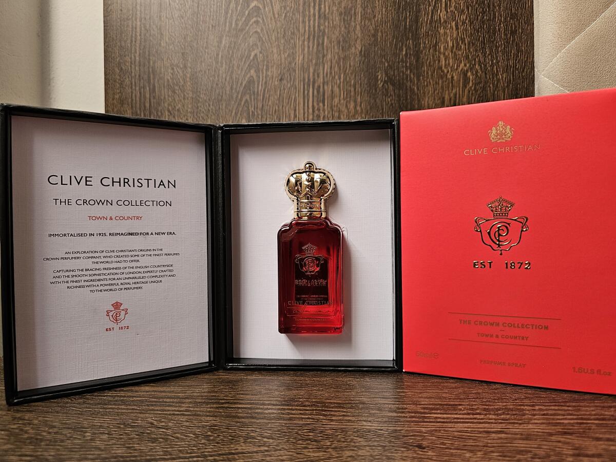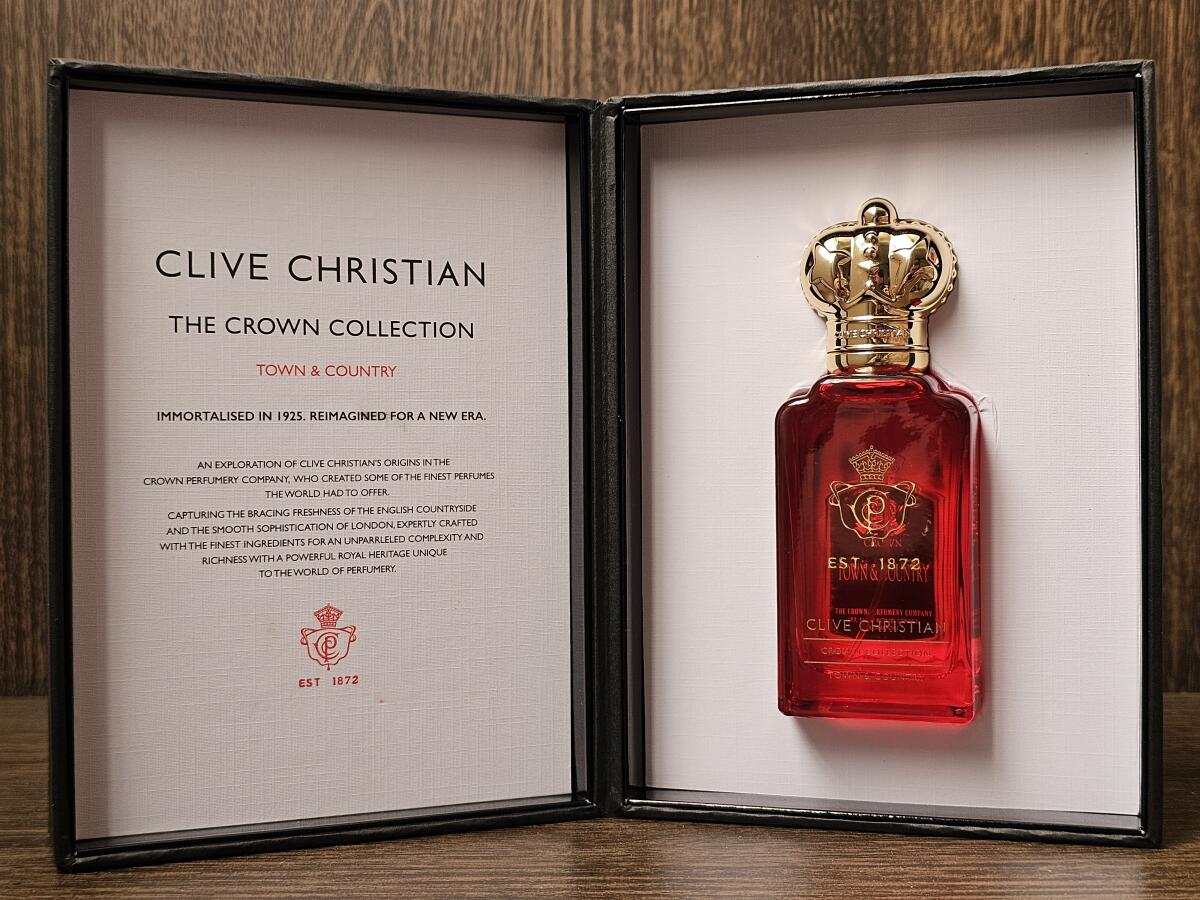 Town & Country podle Clive Christian je Orientální Woody vůně pro ženy a muže. Toto je nová vůně. Town & Country byl/a uveden/a v roce 2023. "Nosem" za touto vůní je Vincent Ricord. Vrchní tón je Šalvěj muškátová ; střední tón jeAmbra ; základní tón je Santalové dřevo.