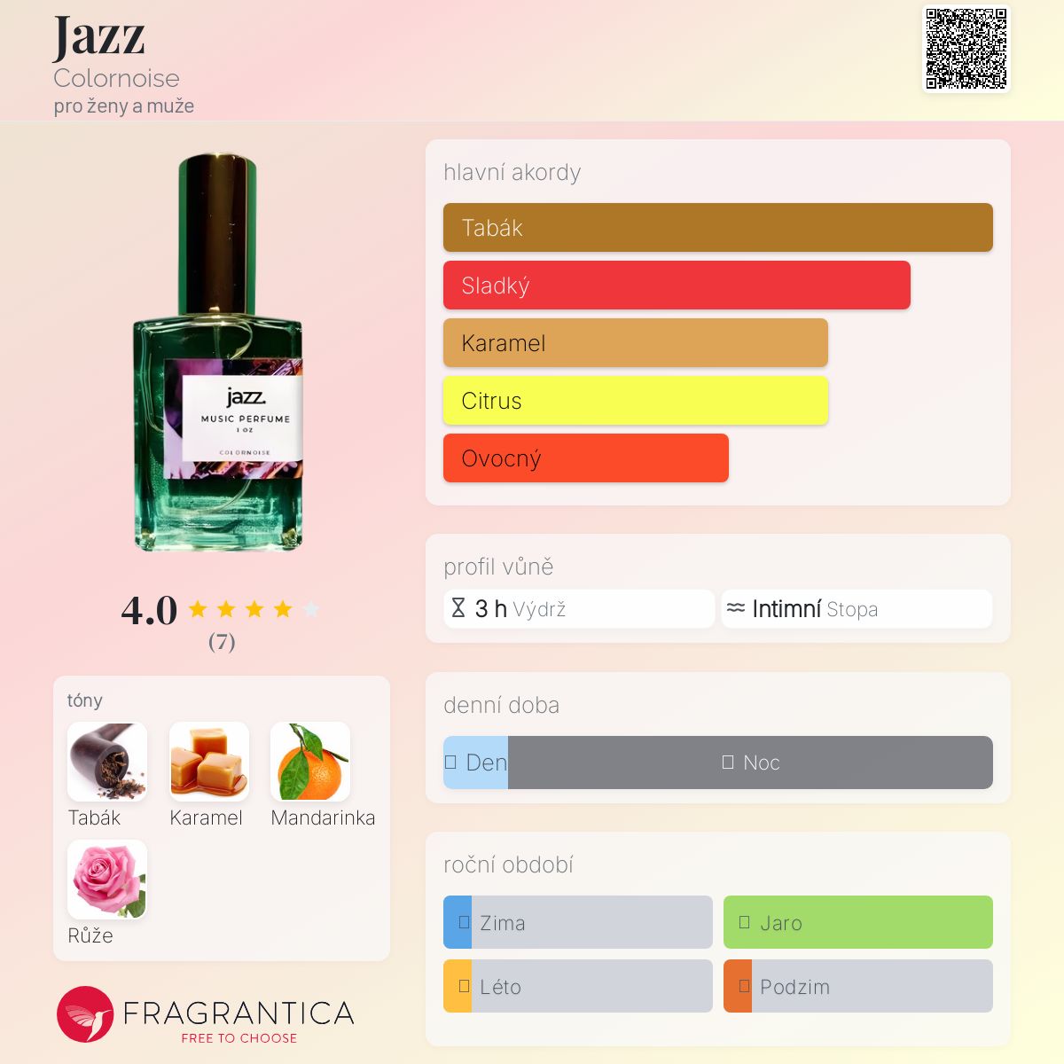 Jazz podle Colornoise je Orientální Floral vůně pro ženy a muže. Jazz byl/a uveden/a v roce 2019. "Nosem" za touto vůní je Krista.