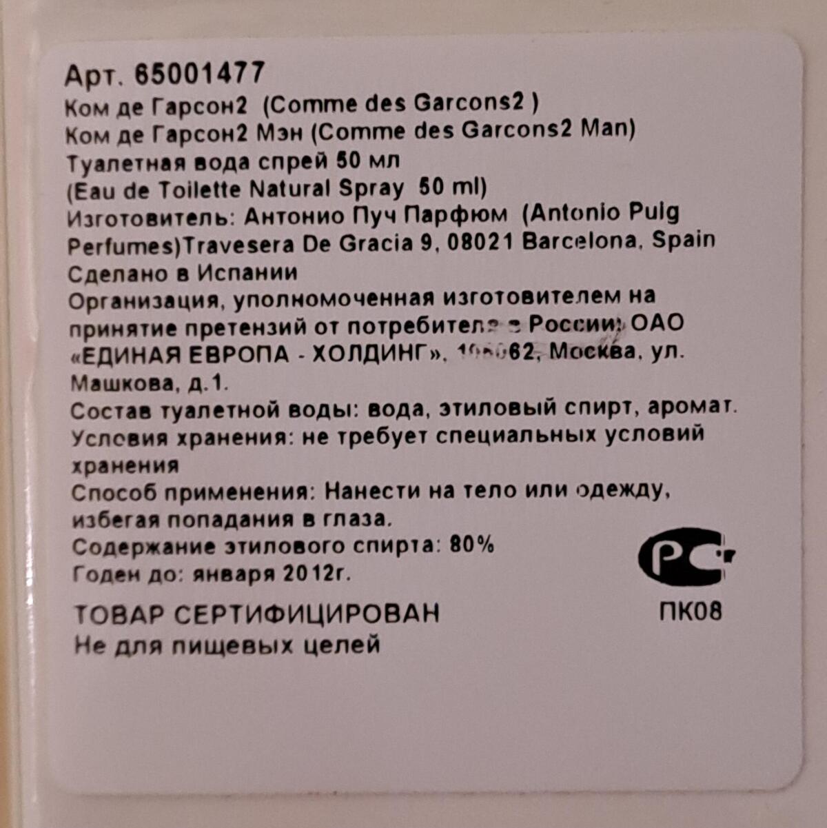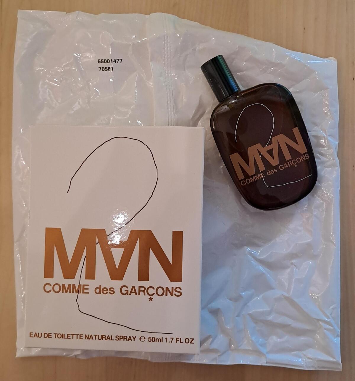 Comme des Garcons 2 Man podle Comme des Garcons je Woody Chypre vůně pro muže. Comme des Garcons 2 Man byl/a uveden/a v roce 2004. "Nosem" za touto vůní je Mark Buxton. Vrchní tóny jsou Aldehydy, Muškátový oříšek, Kmín, Kumquat a Máta; střední tóny jsouVetiver, Šafrán a Kosatec ; základní tóny jsou Kadidlo, Mahagon a Kůže.