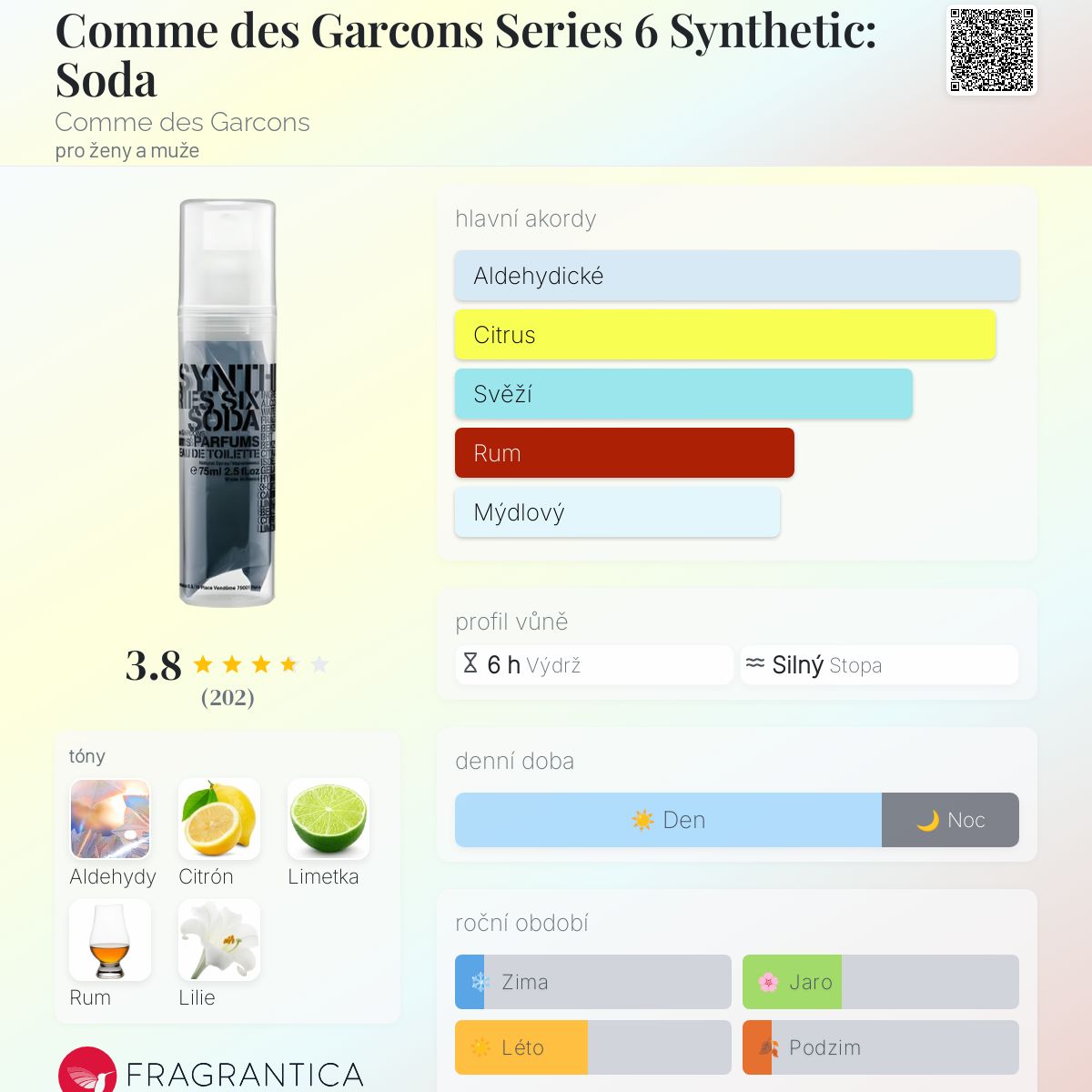 Comme des Garcons Series 6 Synthetic: Soda podle Comme des Garcons je Aromatic vůně pro ženy a muže. Comme des Garcons Series 6 Synthetic: Soda byl/a uveden/a v roce 2004. "Nosem" za touto vůní je Nathalie Feisthauer.