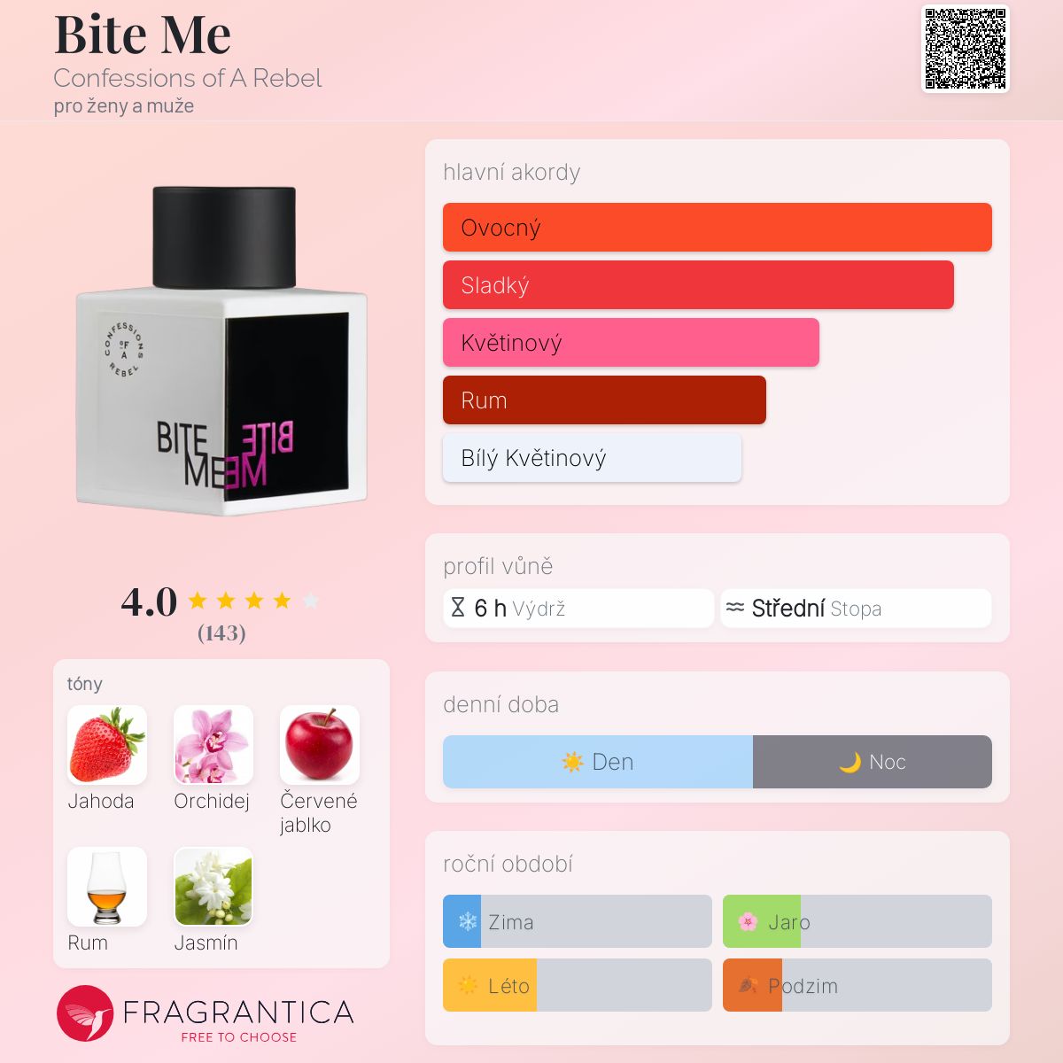 Bite Me podle Confessions of A Rebel je Floral Fruity vůně pro ženy a muže. Bite Me byl/a uveden/a v roce 2022.