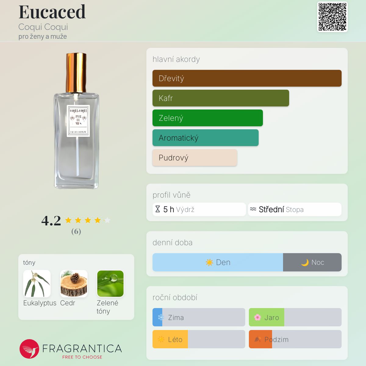 Eucaced podle Coqui Coqui je Woody vůně pro ženy a muže. Eucaced byl/a uveden/a v roce 2015. "Nosem" za touto vůní je Nicolas Malleville.