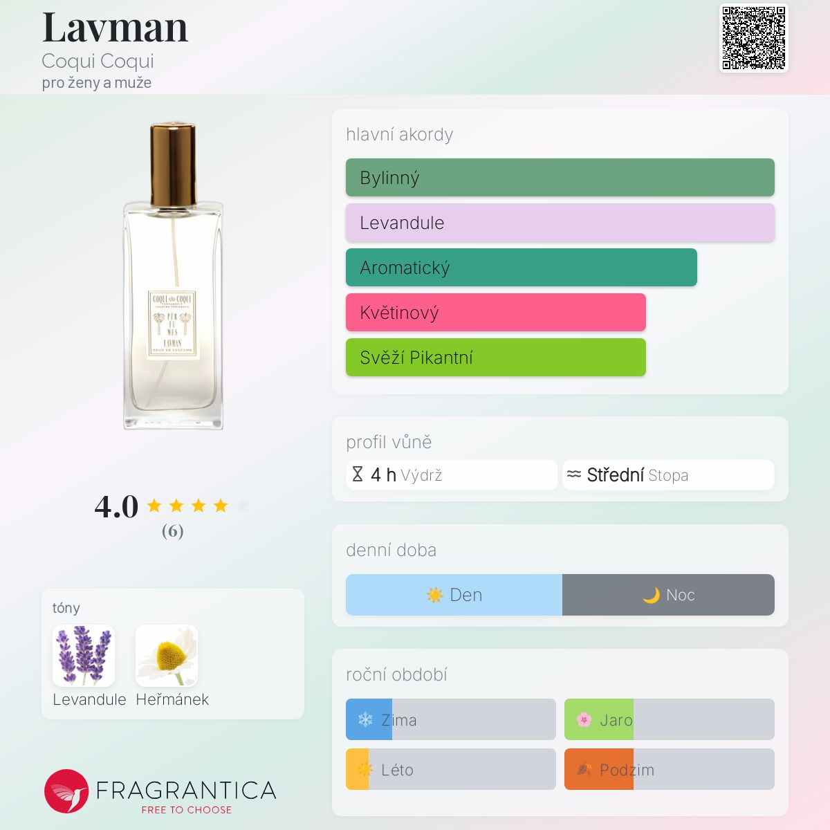 Lavman podle Coqui Coqui je Aromatic vůně pro ženy a muže. Lavman byl/a uveden/a v roce 2003. "Nosem" za touto vůní je Nicolas Malleville.