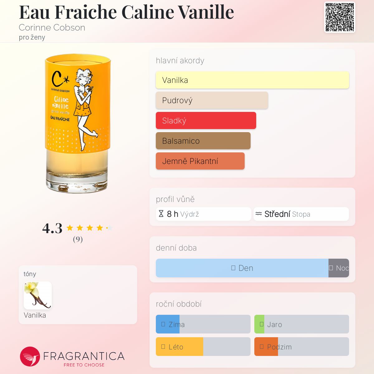 Eau Fraiche Caline Vanille podle Corinne Cobson je Orientální Vanilla vůně pro ženy. Eau Fraiche Caline Vanille byl/a uveden/a v roce 2006.