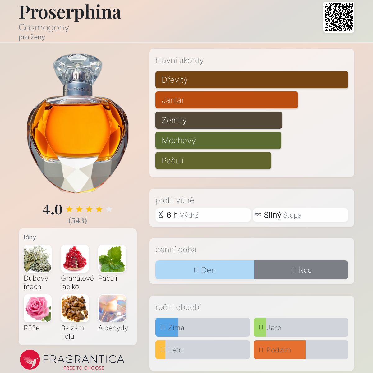 Proserphina podle Cosmogony je Floral Woody Musk vůně pro ženy. Proserphina byl/a uveden/a v roce 2020. "Nosem" za touto vůní je Bertrand Duchaufour.