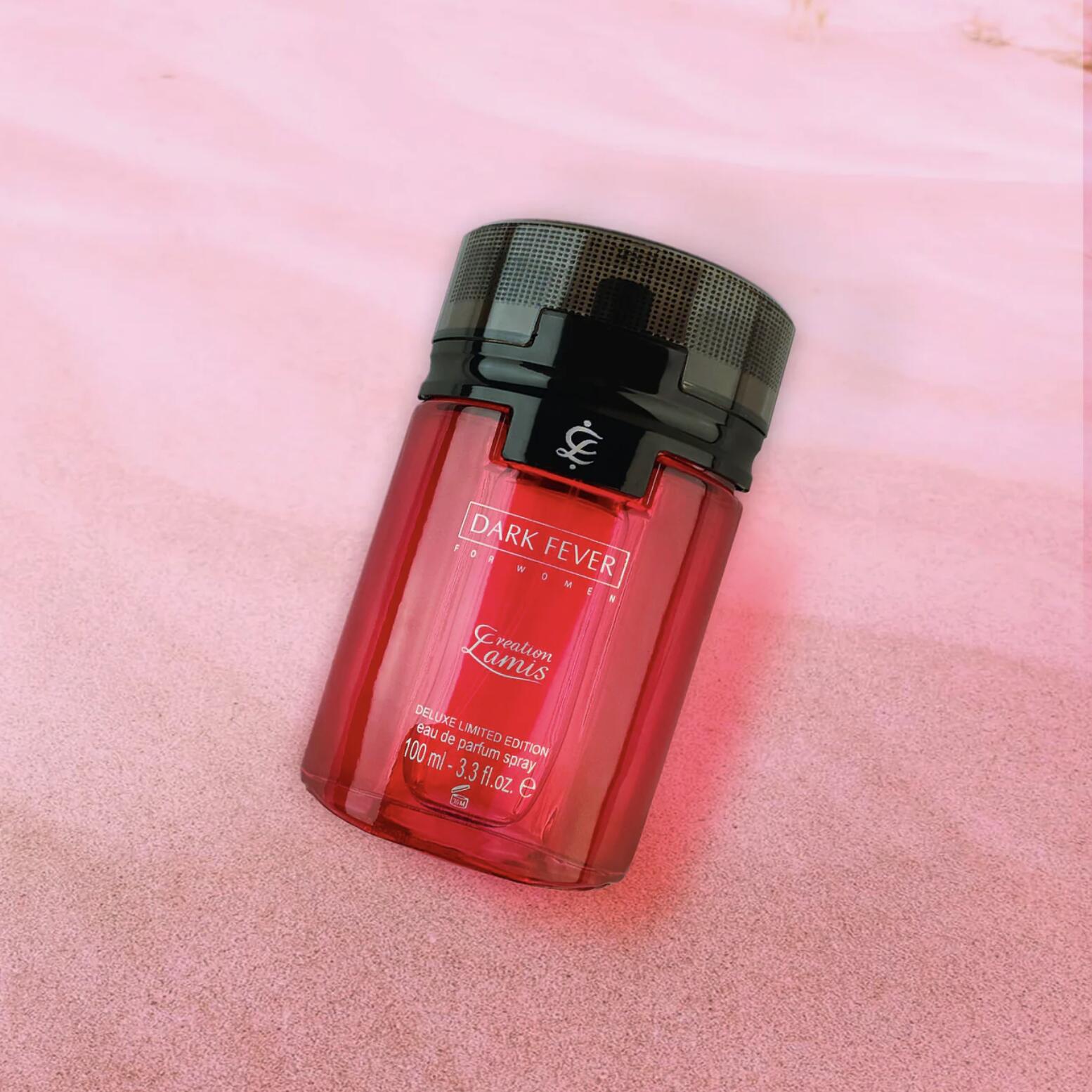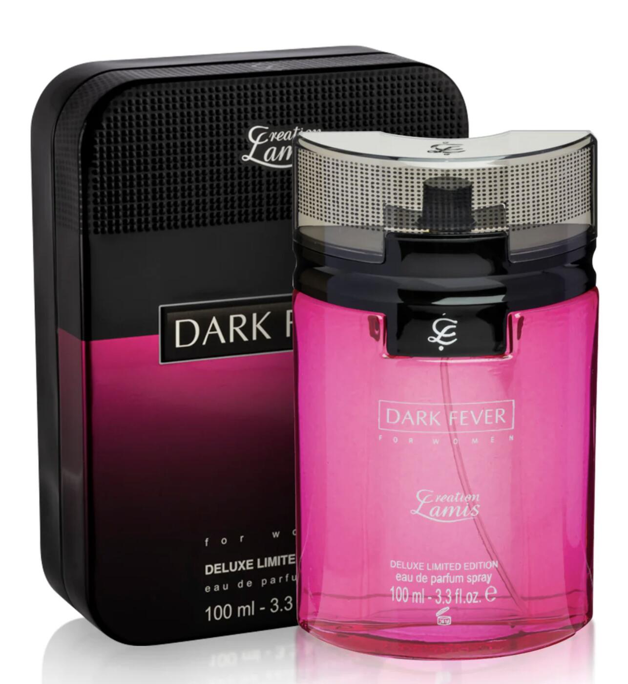 Dark Fever podle Creation Lamis je vůně pro ženy. Vrchní tóny jsou Bergamot, Zelené jablko a Mandarinka; střední tóny jsouRůžový pepř, Červené ovoce, Růže, Zimolez, Koňak a Jasmín ; základní tóny jsou Jantar (ambra), Cedr, Cukr, Pižmo, Guajakové dřevo, Vanilka a Dubový mech.