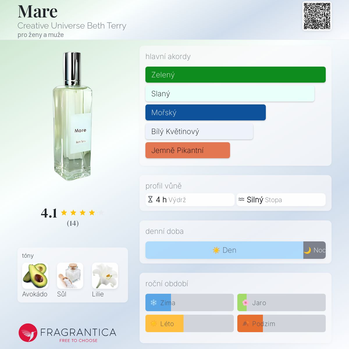 Mare podle Creative Universe Beth Terry je Aromatic vůně pro ženy a muže. Mare byl/a uveden/a v roce 1997. "Nosem" za touto vůní je Beth Terry.
