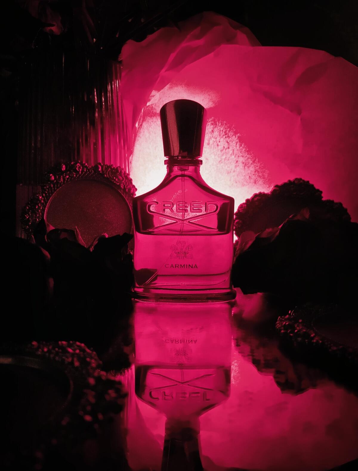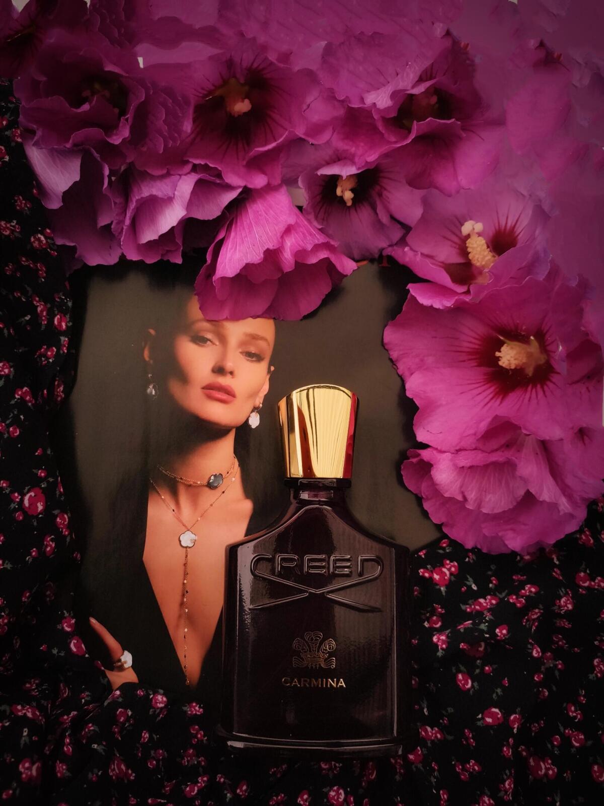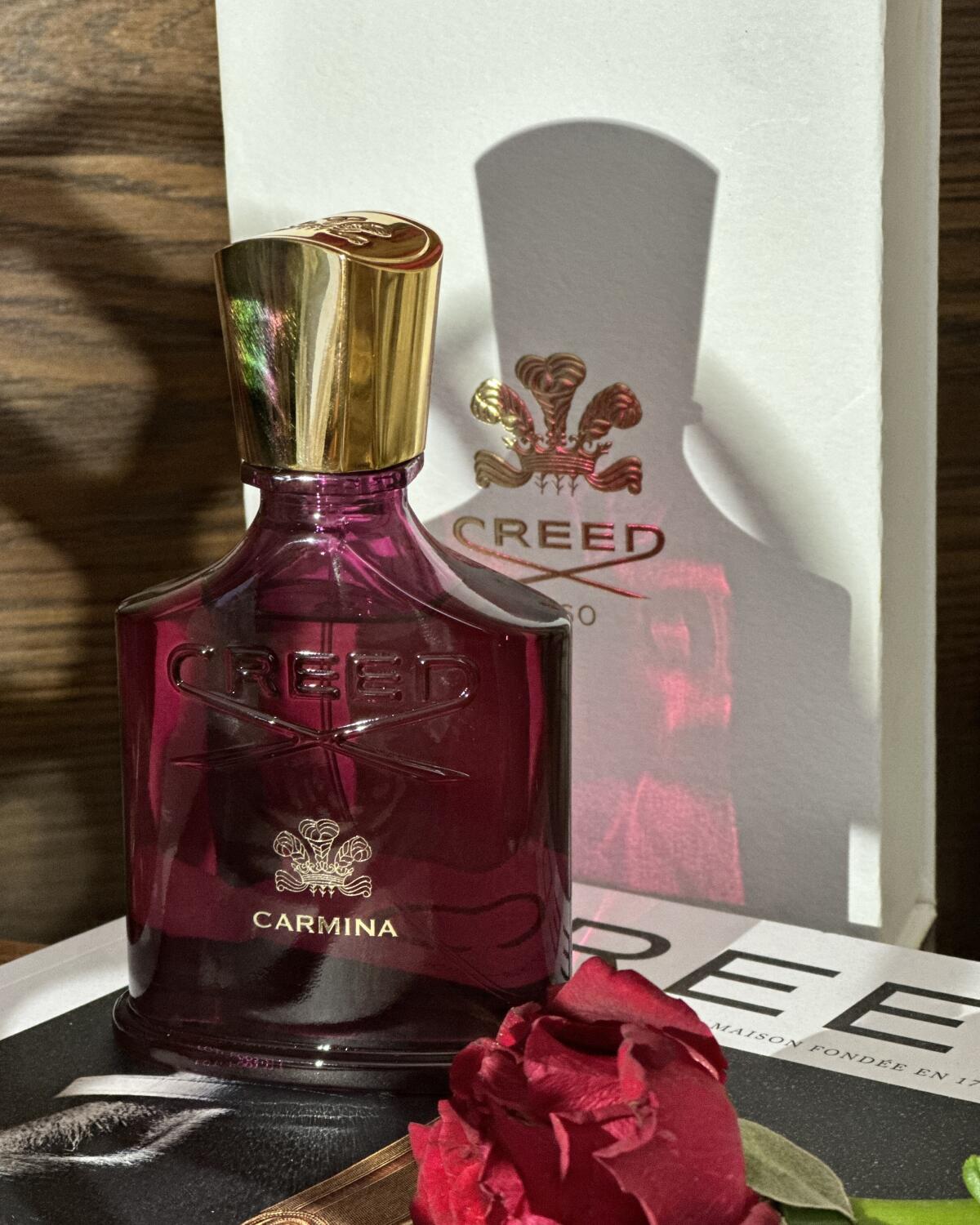 Carmina podle Creed je Floral Woody Musk vůně pro ženy. Carmina byl/a uveden/a v roce 2023. Vrchní tóny jsou Černá třešeň, Šafrán a Růžový pepř; střední tóny jsouRůže májová, Pivoňka, Fialka a Kašmírové dřevo ; základní tóny jsou Pižmo, Ambroxan, Myrha a Kadidlo.